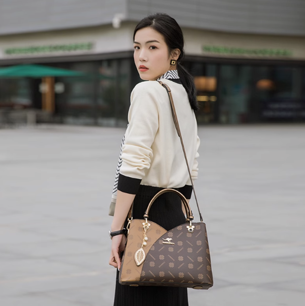 袋鼠專櫃真皮包包2025新款大氣送媽媽牛皮手提包時尚中年斜挎女包