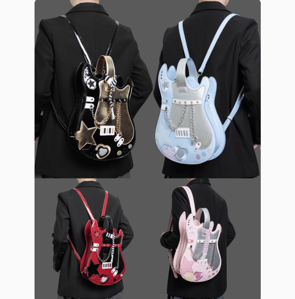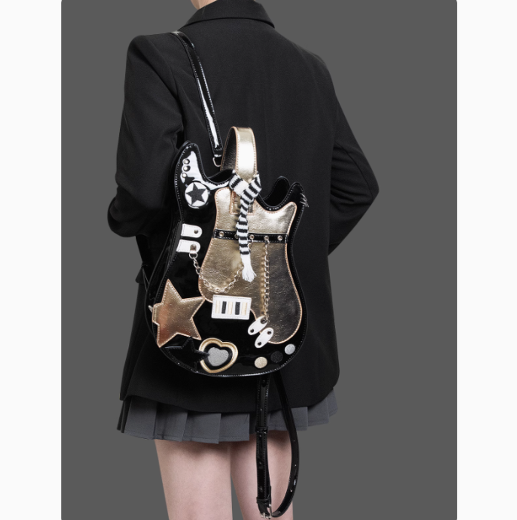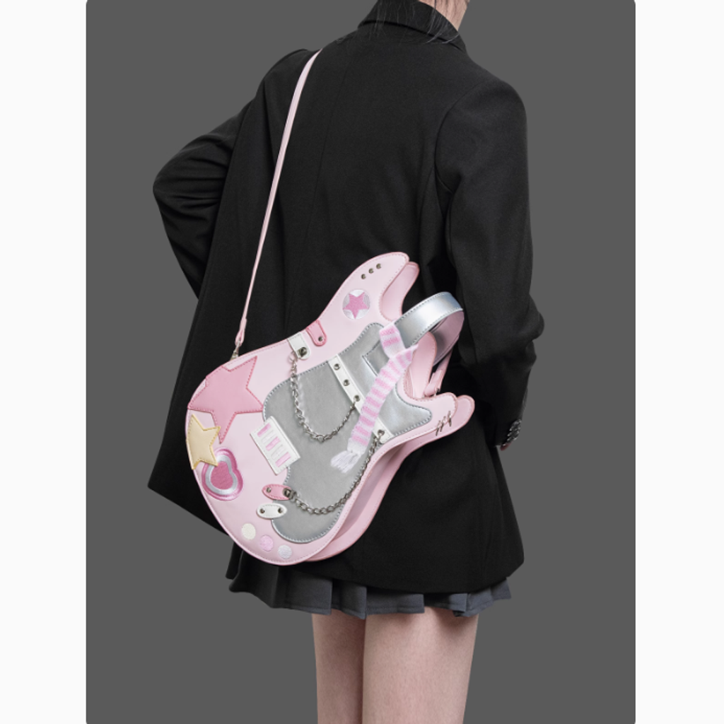 HIATUS原創銀粉色吉他包創意撞色可愛圍巾雙肩斜挎背包甜美愛心包