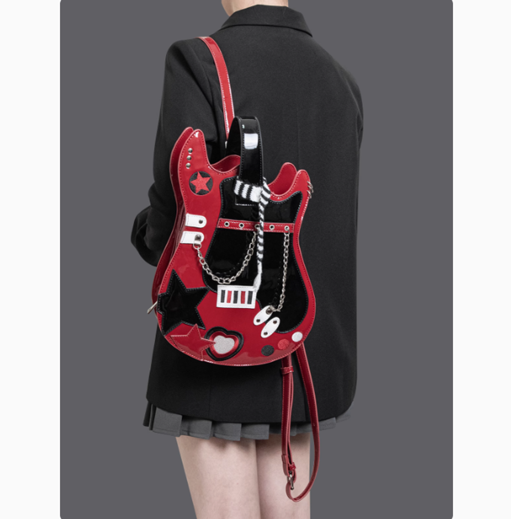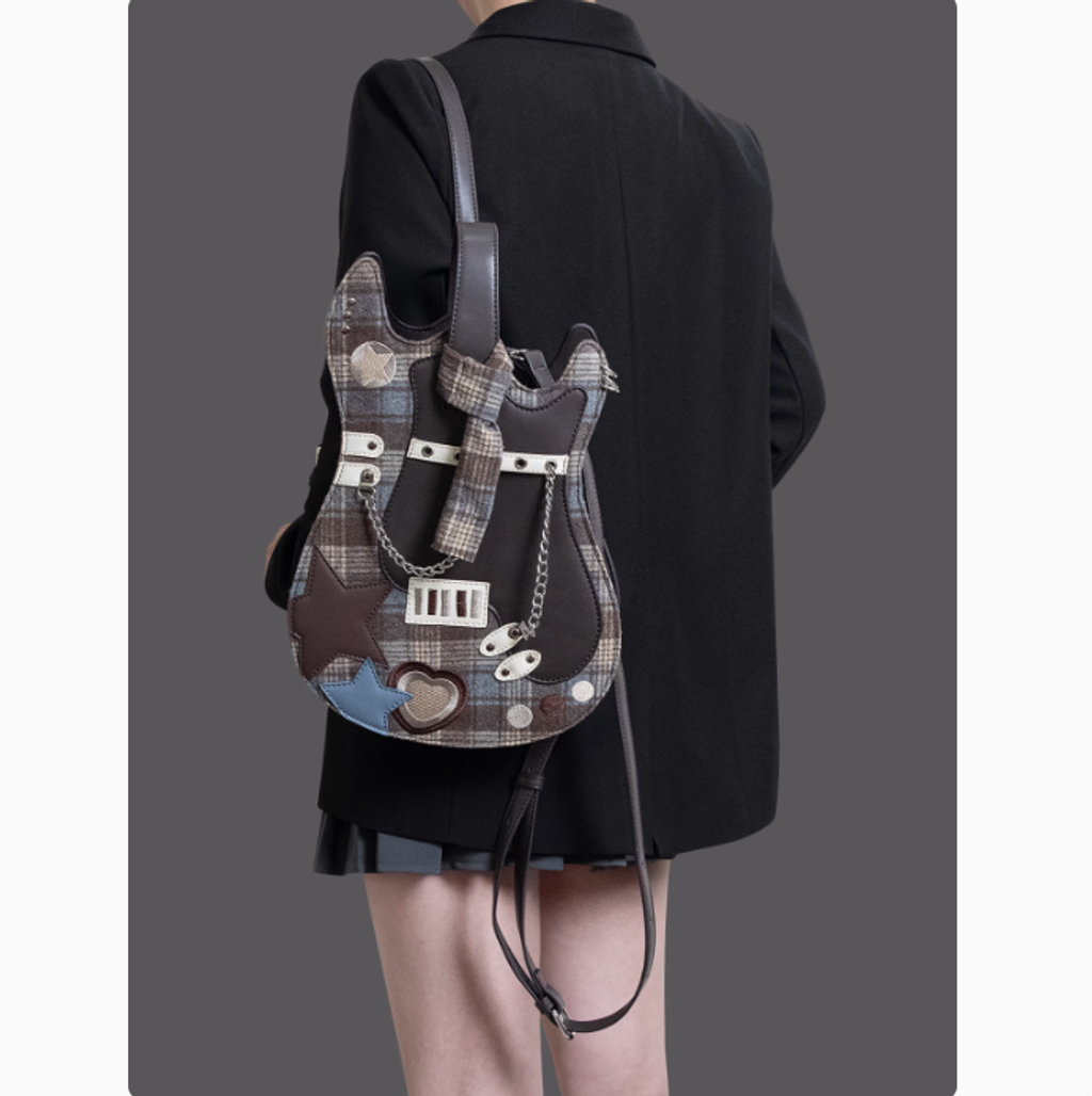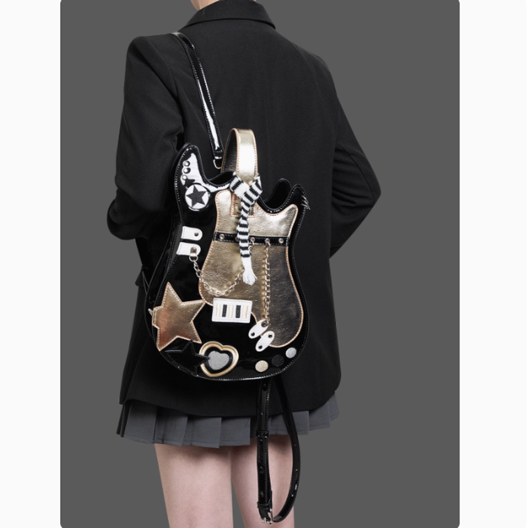 HIATUS原創銀粉色吉他包創意撞色可愛圍巾雙肩斜挎背包甜美愛心包