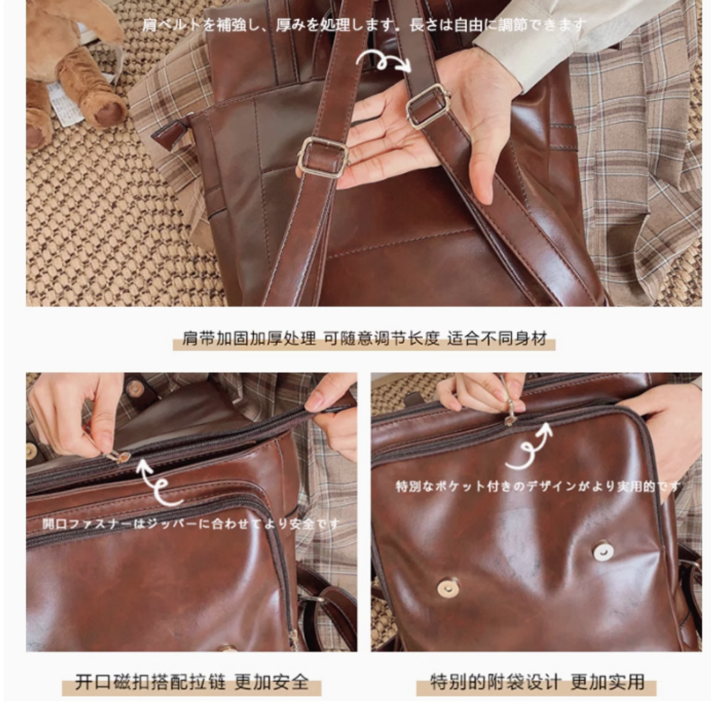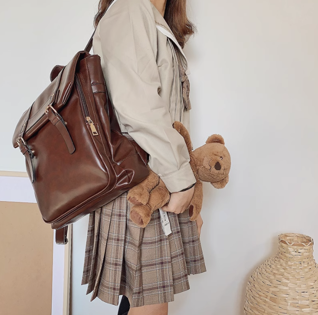 ClakaMke日系JK制服雙肩包學院風背包復古軟皮女包休閒劍橋包書包