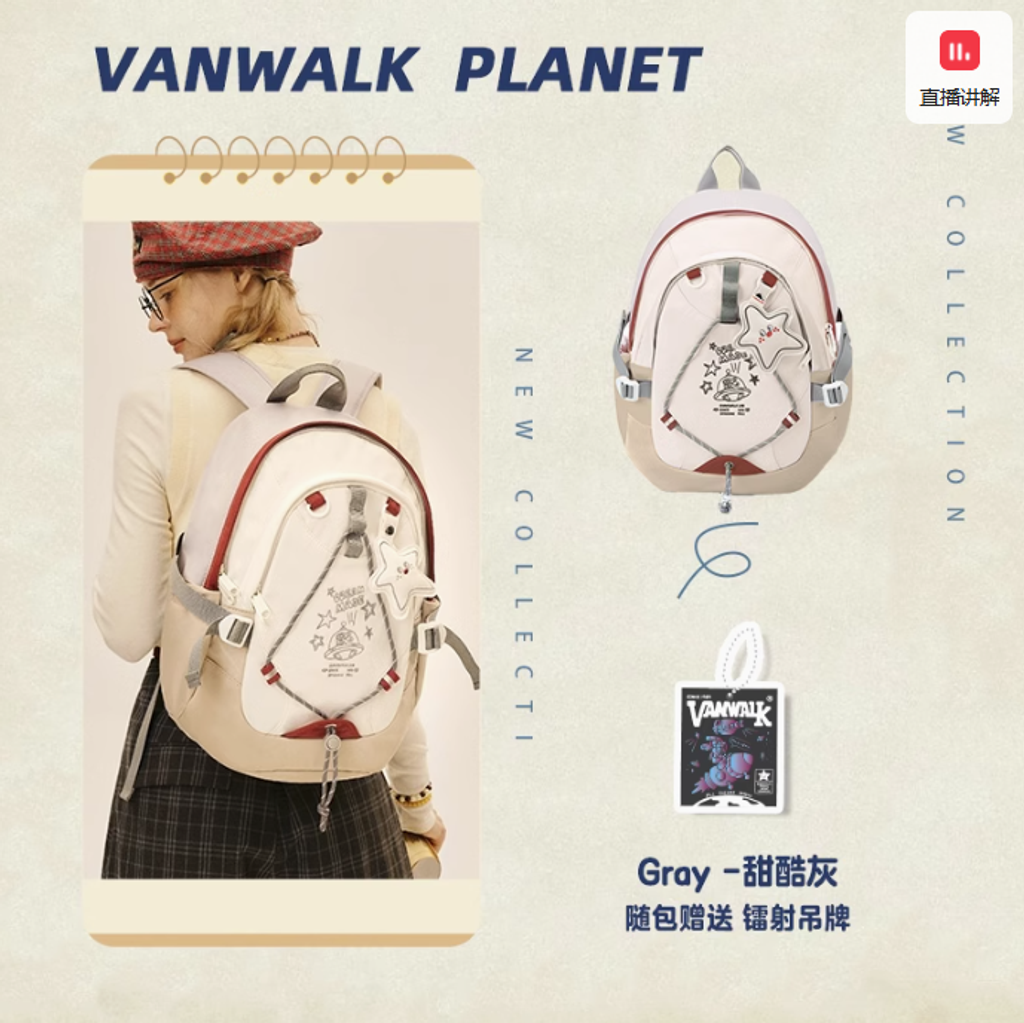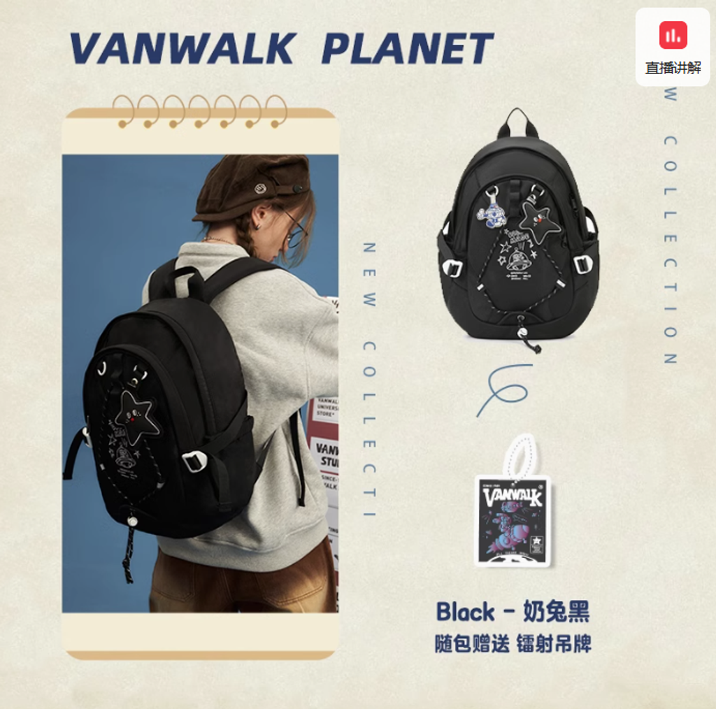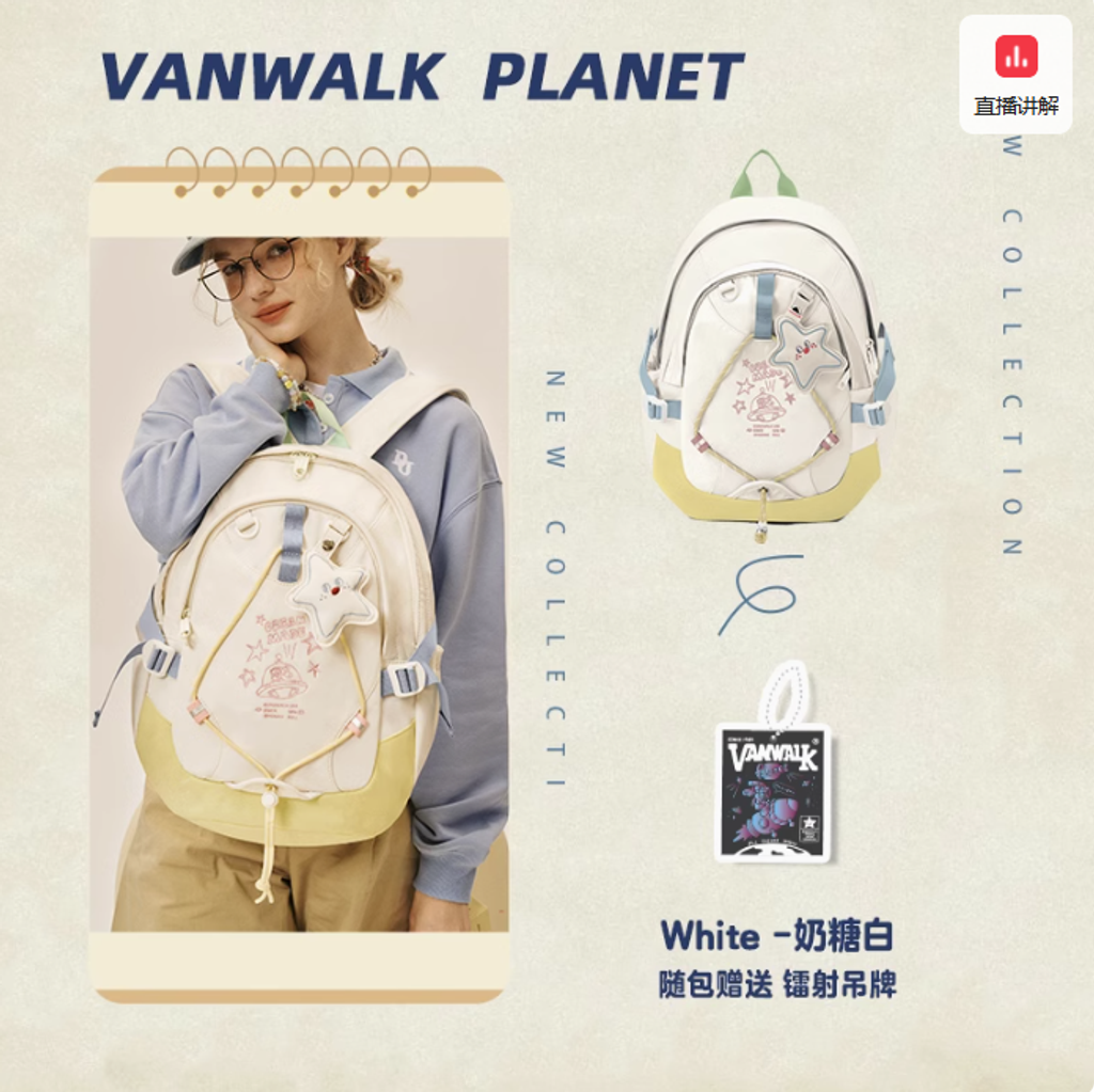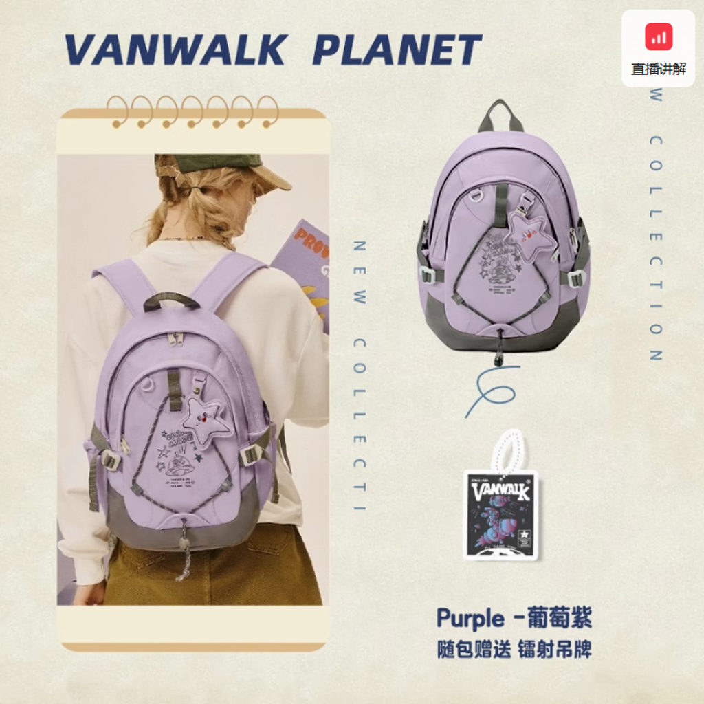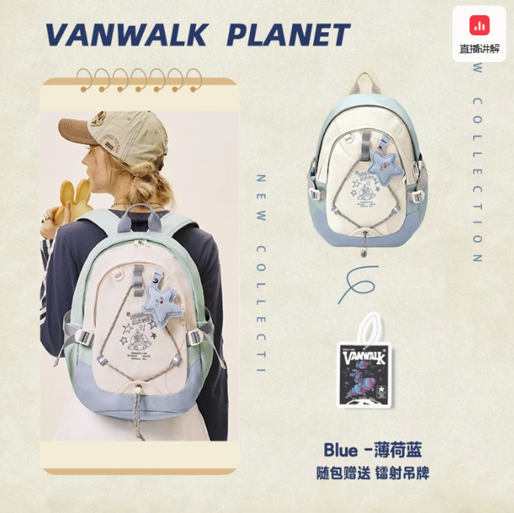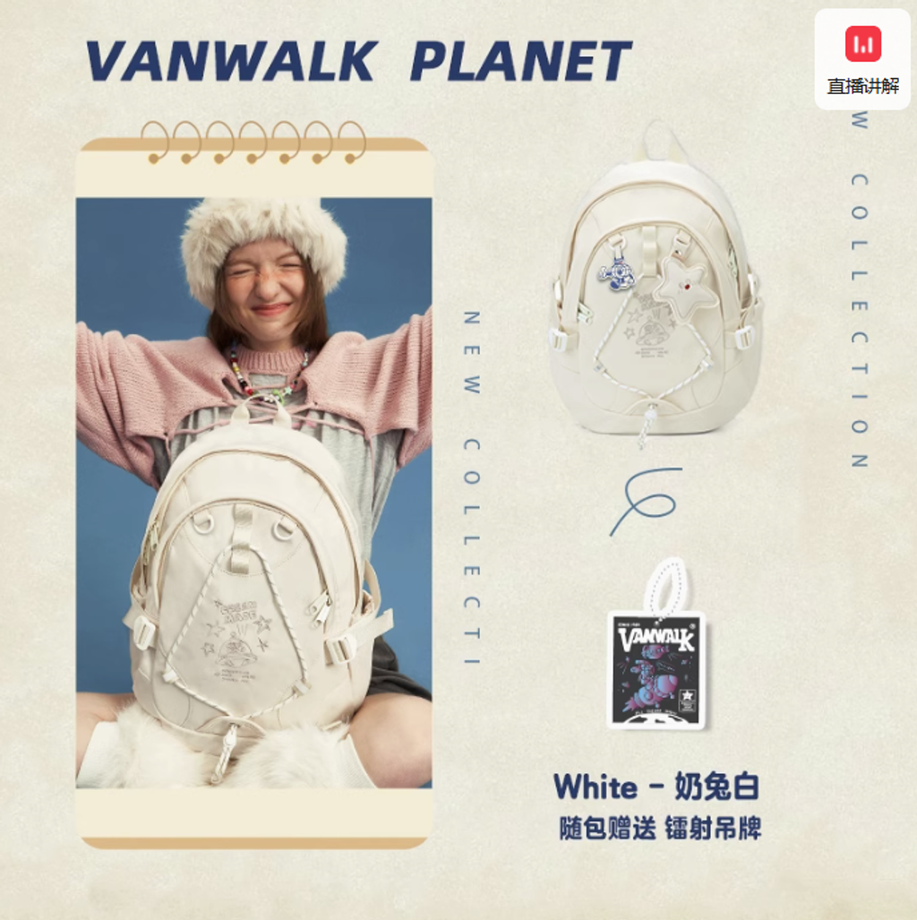 VANWALK星球兔可愛大學生雙肩包女新款初高中生書包輕便旅行背包