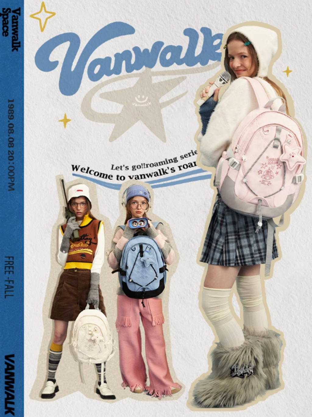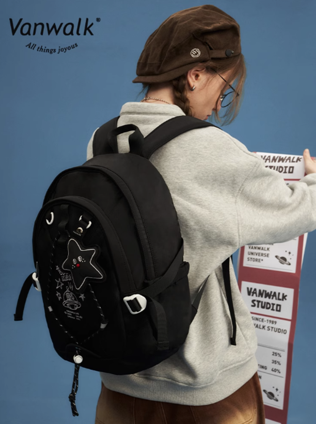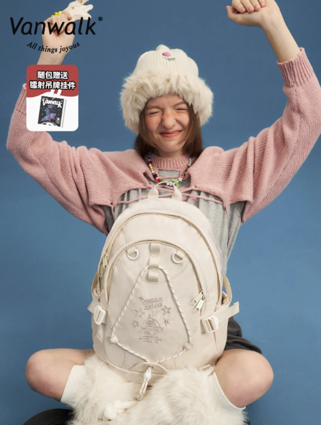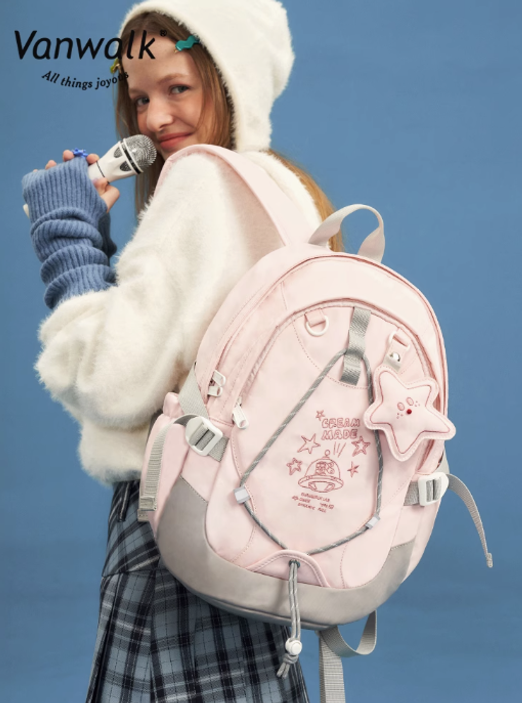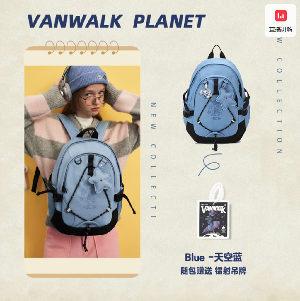 VANWALK星球兔可愛大學生雙肩包女新款初高中生書包輕便旅行背包