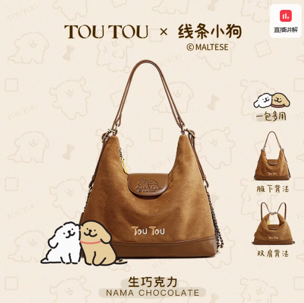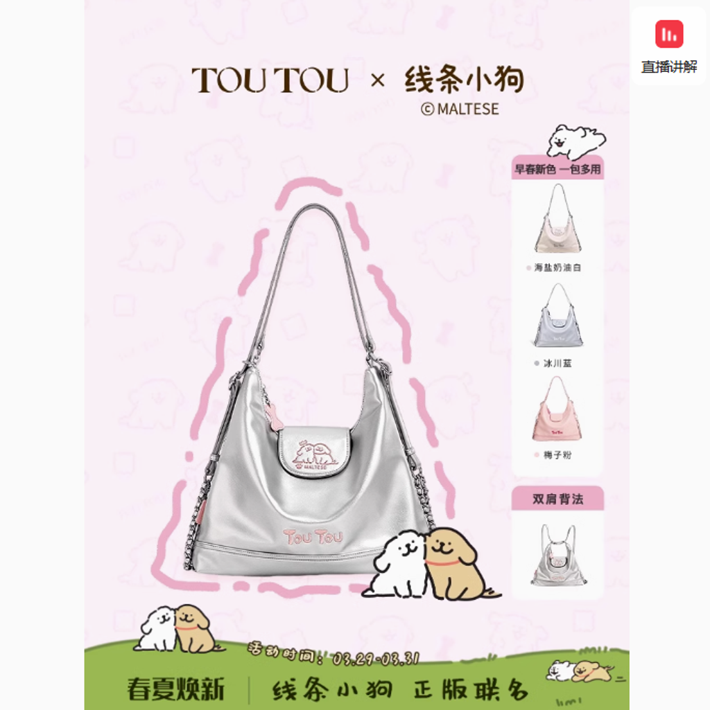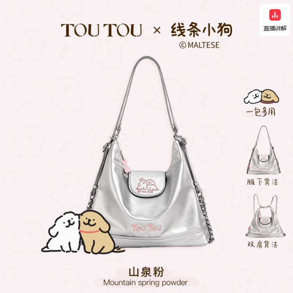 TOUTOU線條小狗正版雙肩包女大容量通勤托特包百搭可單肩腋下大包