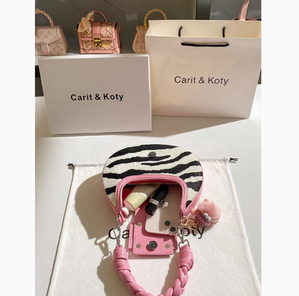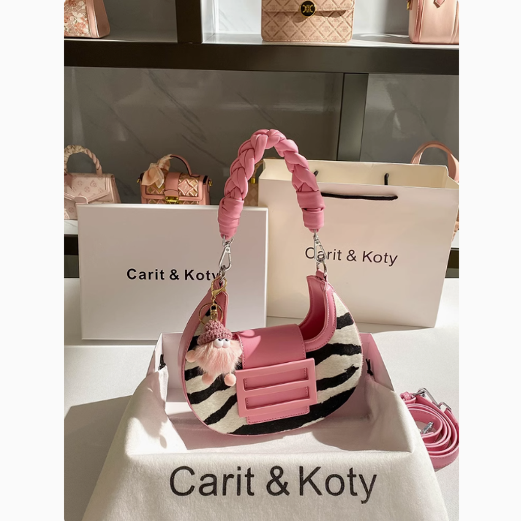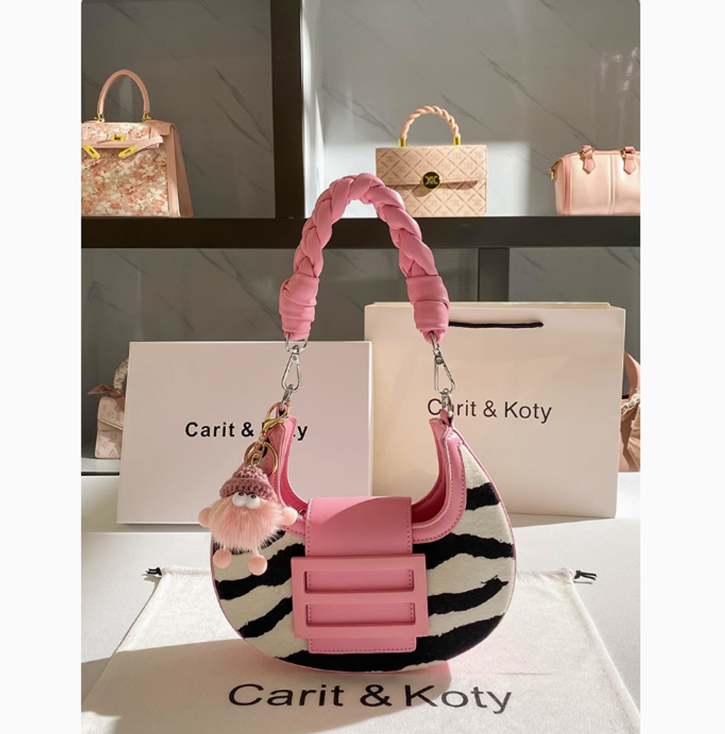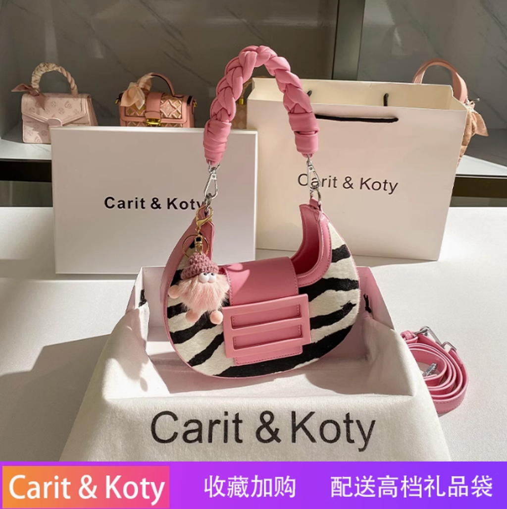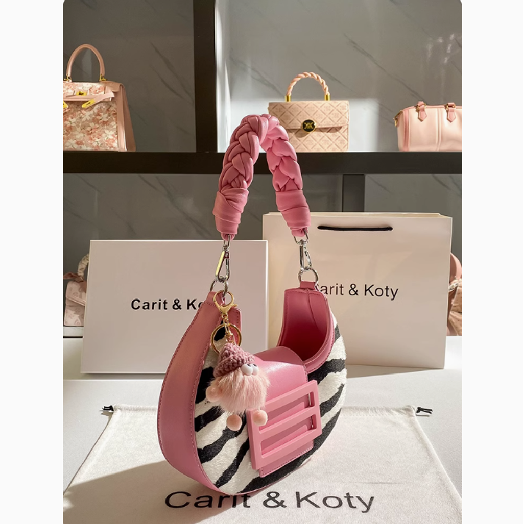 Carit Koty高級感手工編織月牙包包女粉色小眾腋下包2025春季新款