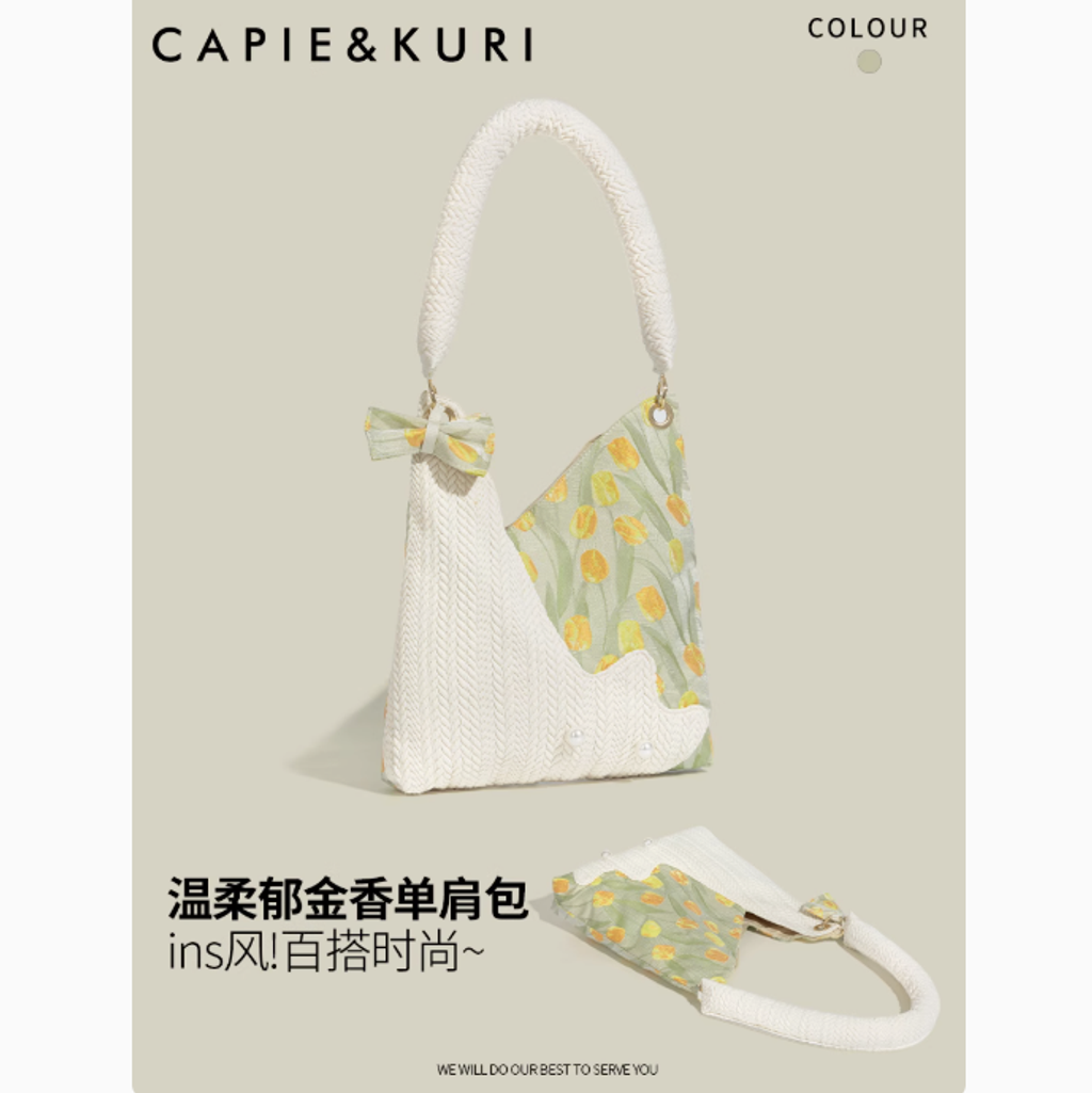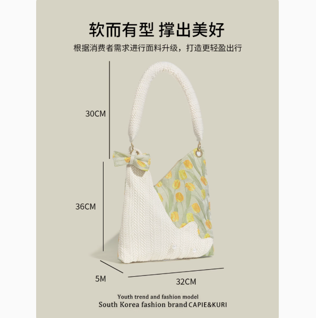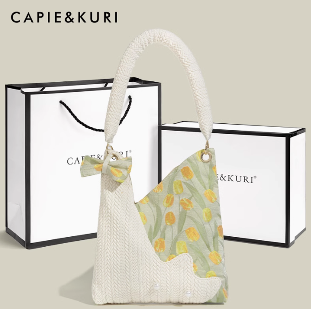CAPIE&KURI韓系鬱金香可愛貓咪托特包女大容量百搭上課通勤腋下包