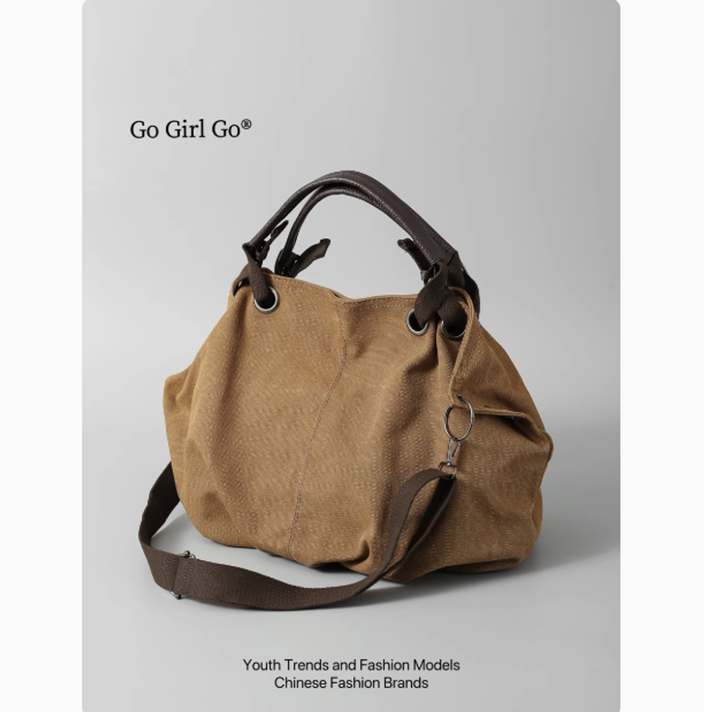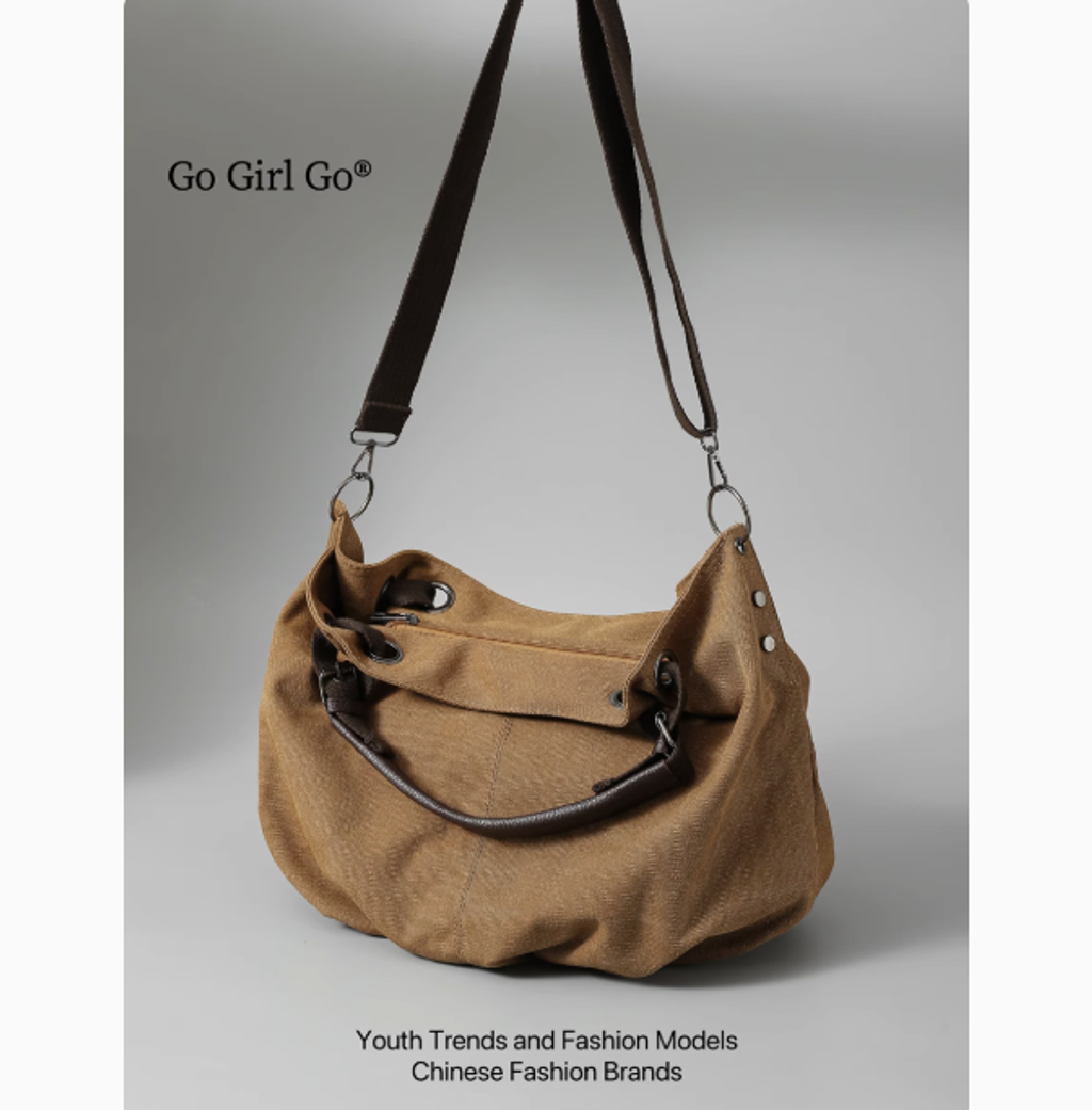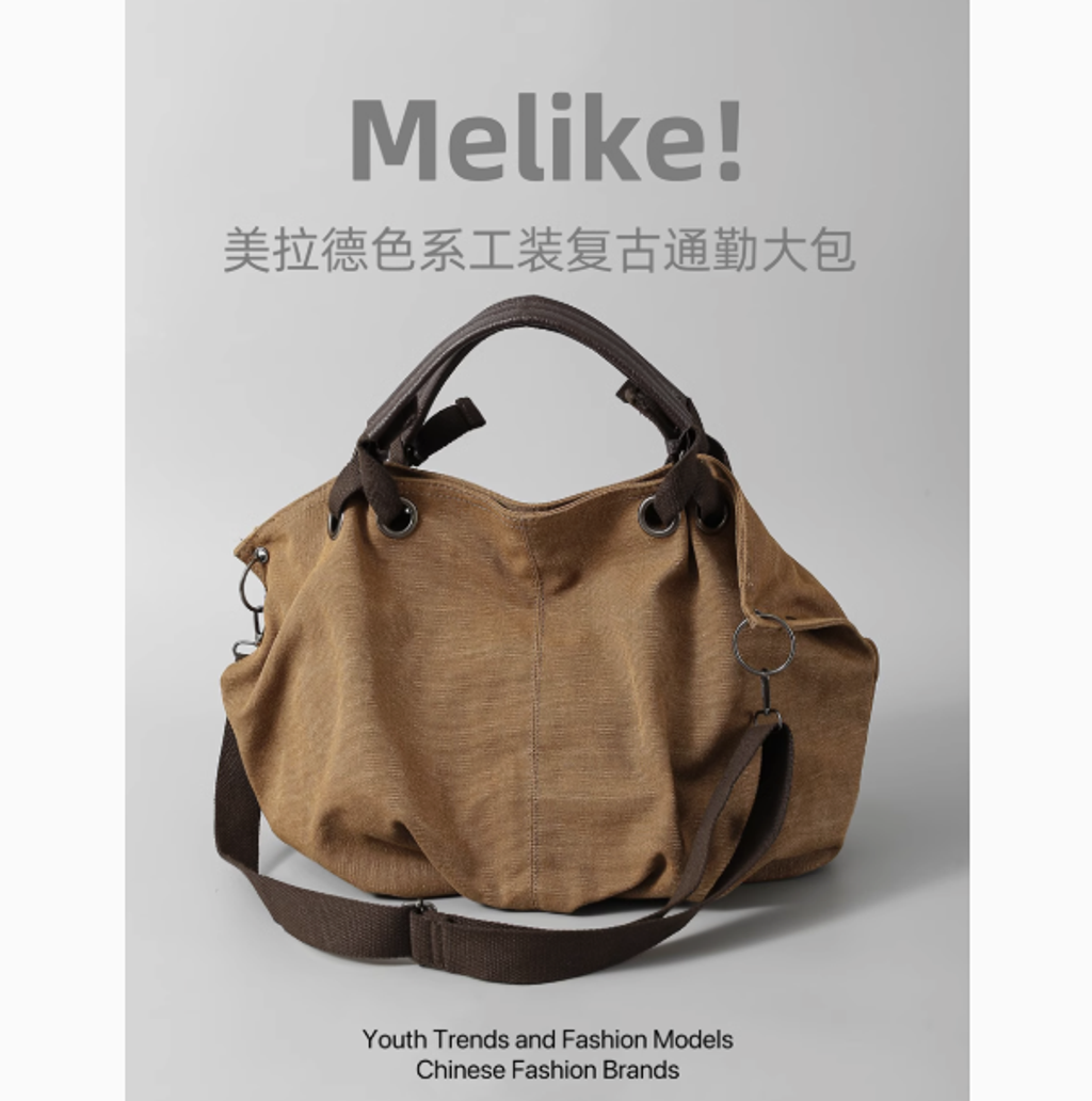 2025新款美式工裝復古通勤大包可斜挎帆布手提包美拉德色系托特包