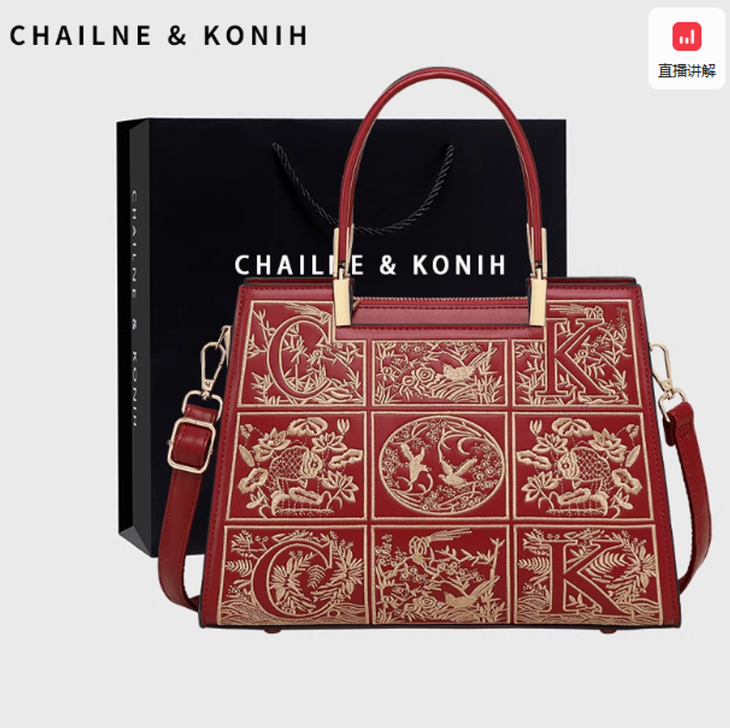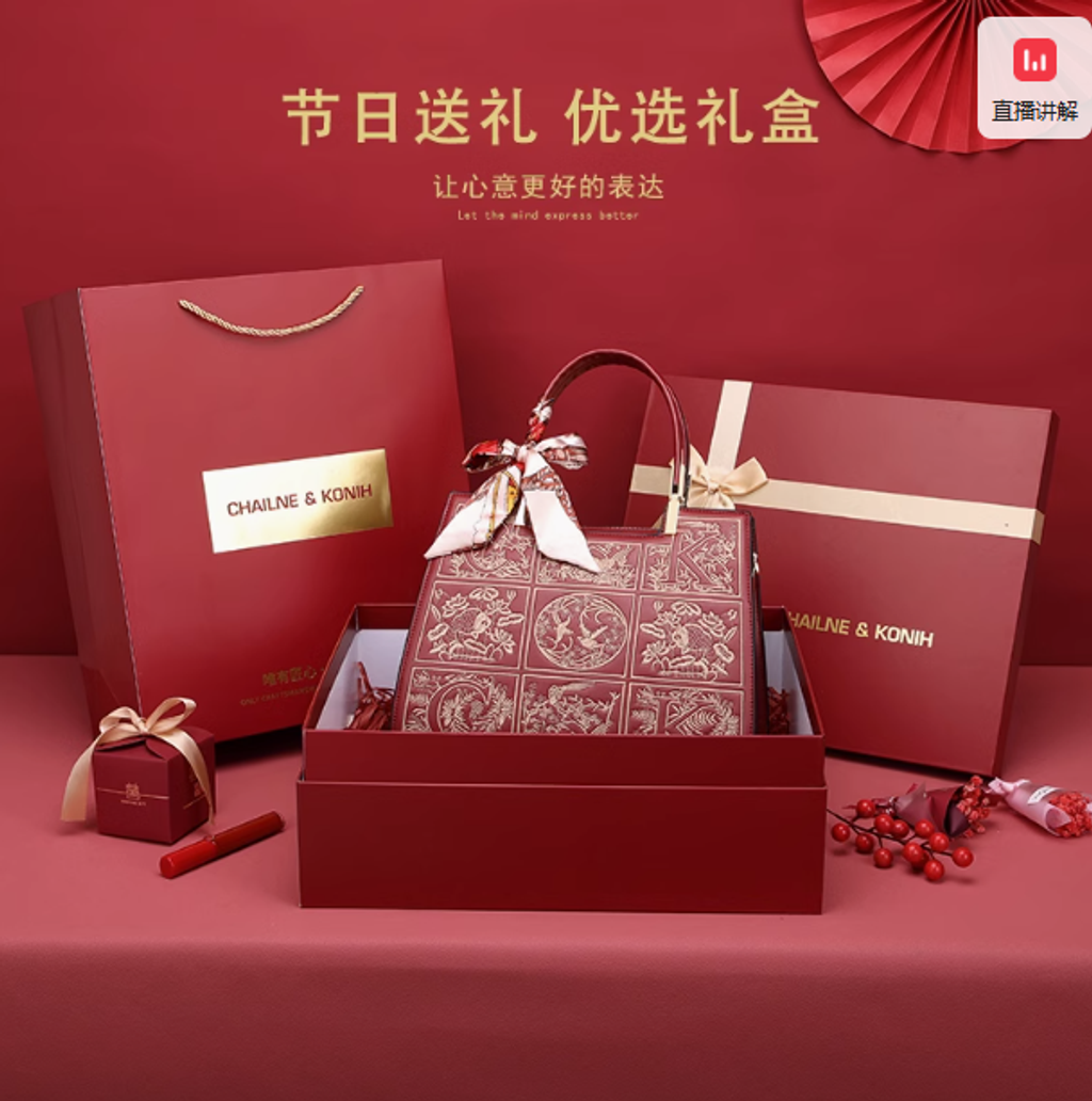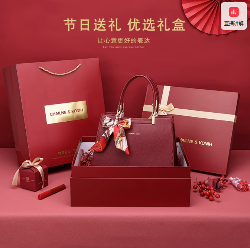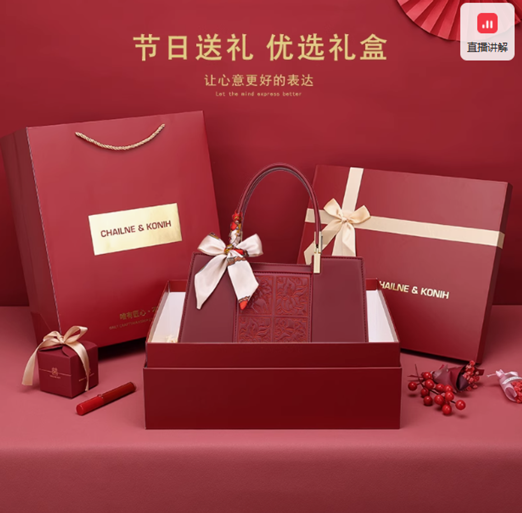 酒紅色刺繡+紅色禮盒裝送絲巾+禮品袋