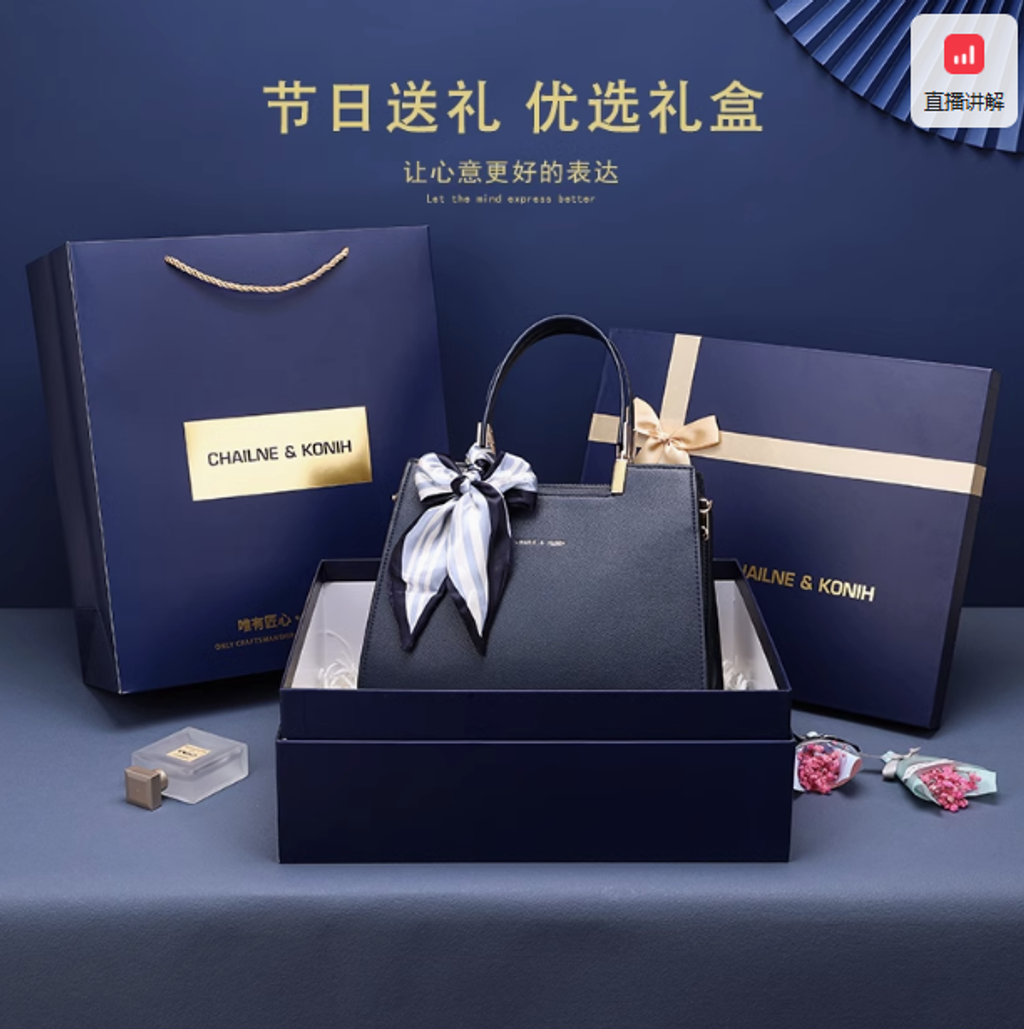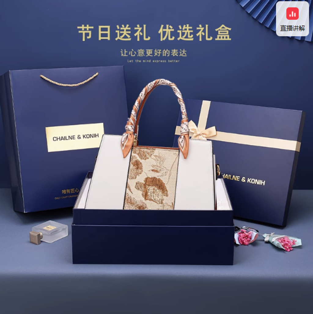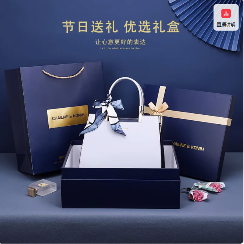 深藍色+藍色禮盒裝送絲巾+禮品袋+禮品袋