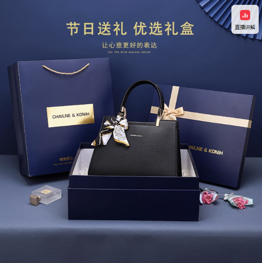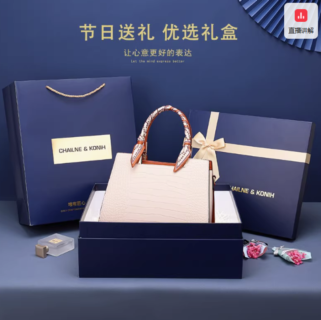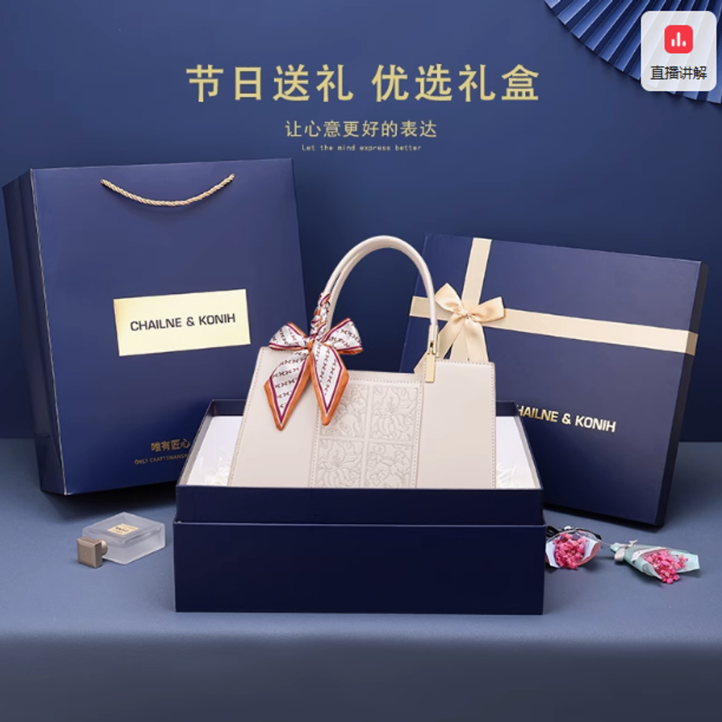 深藍色+藍色禮盒裝送絲巾+禮品袋+禮品袋