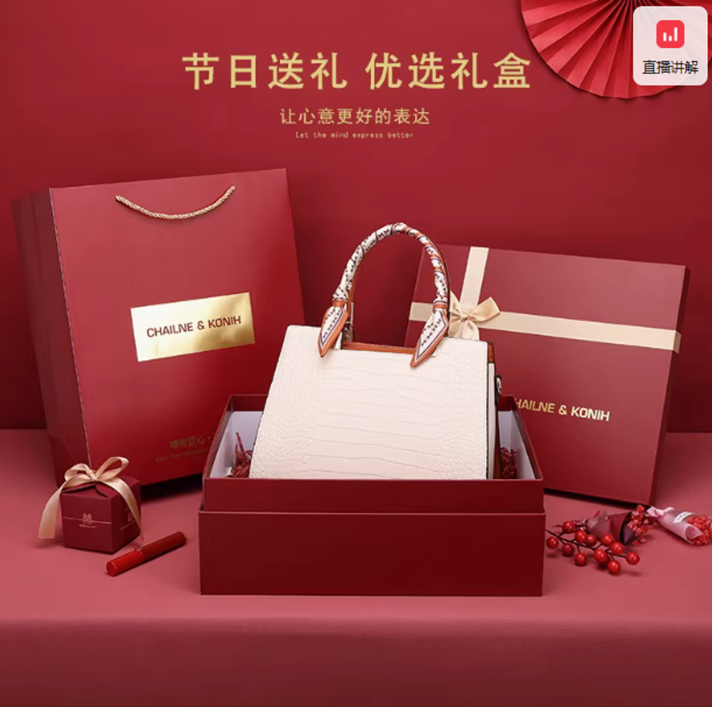 杏色鱷紋+紅色禮盒裝送絲巾+禮品袋