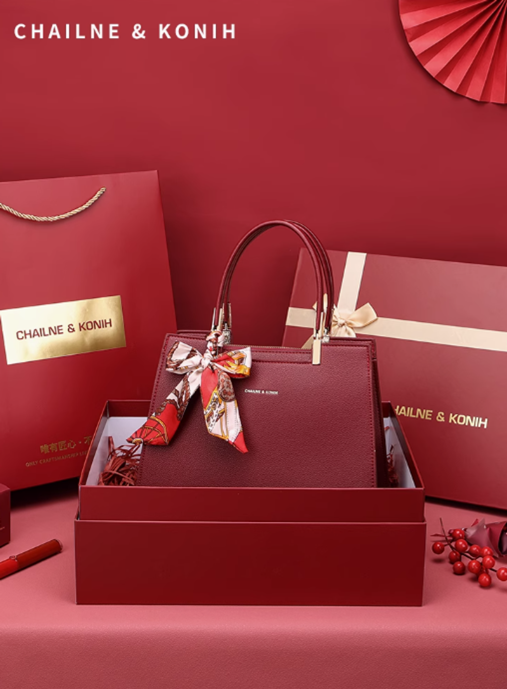 酒紅色+紅色禮盒裝送絲巾+禮品袋