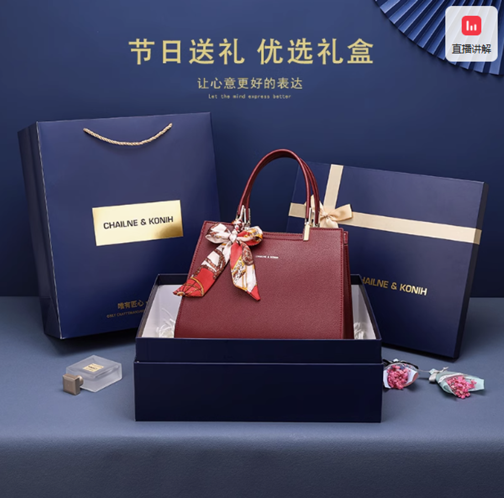 深藍色+紅色禮盒裝送絲巾+禮品袋