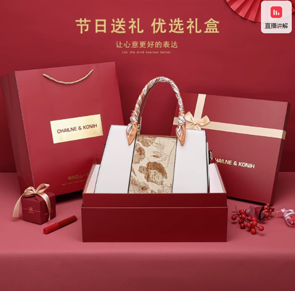 米白色+紅色禮盒裝送絲巾+禮品袋