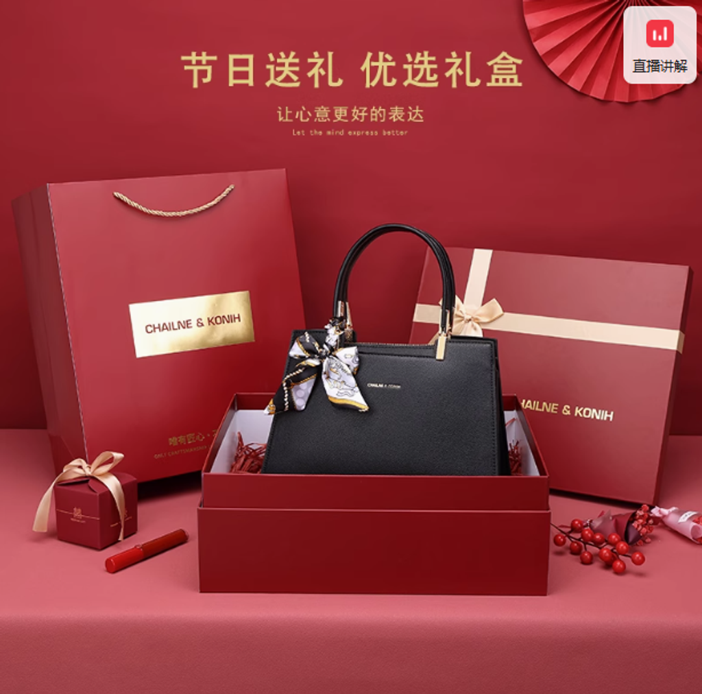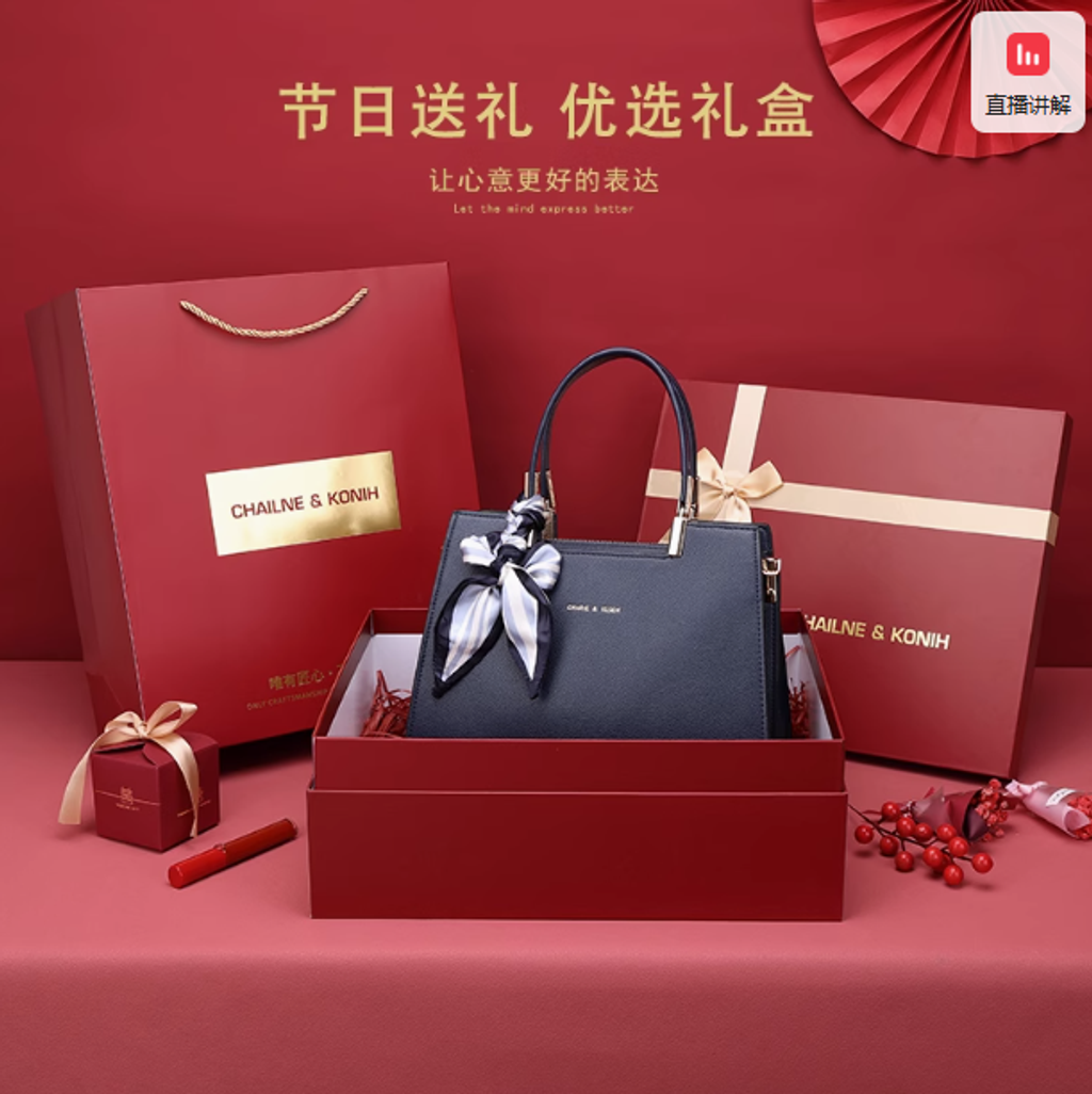黑色+紅色禮盒裝送絲巾+禮品袋
