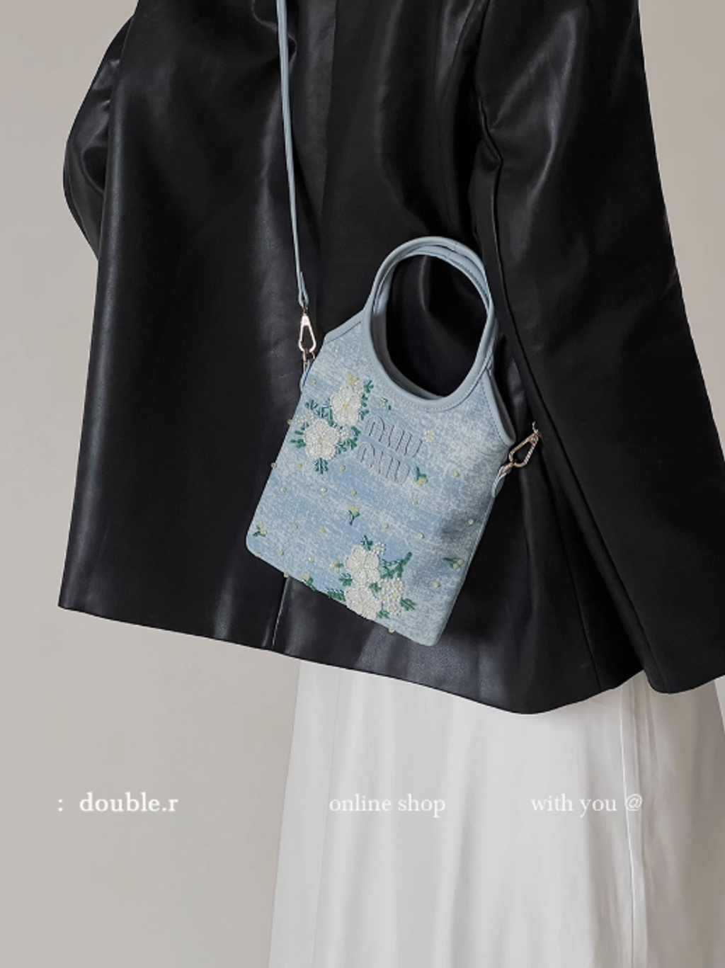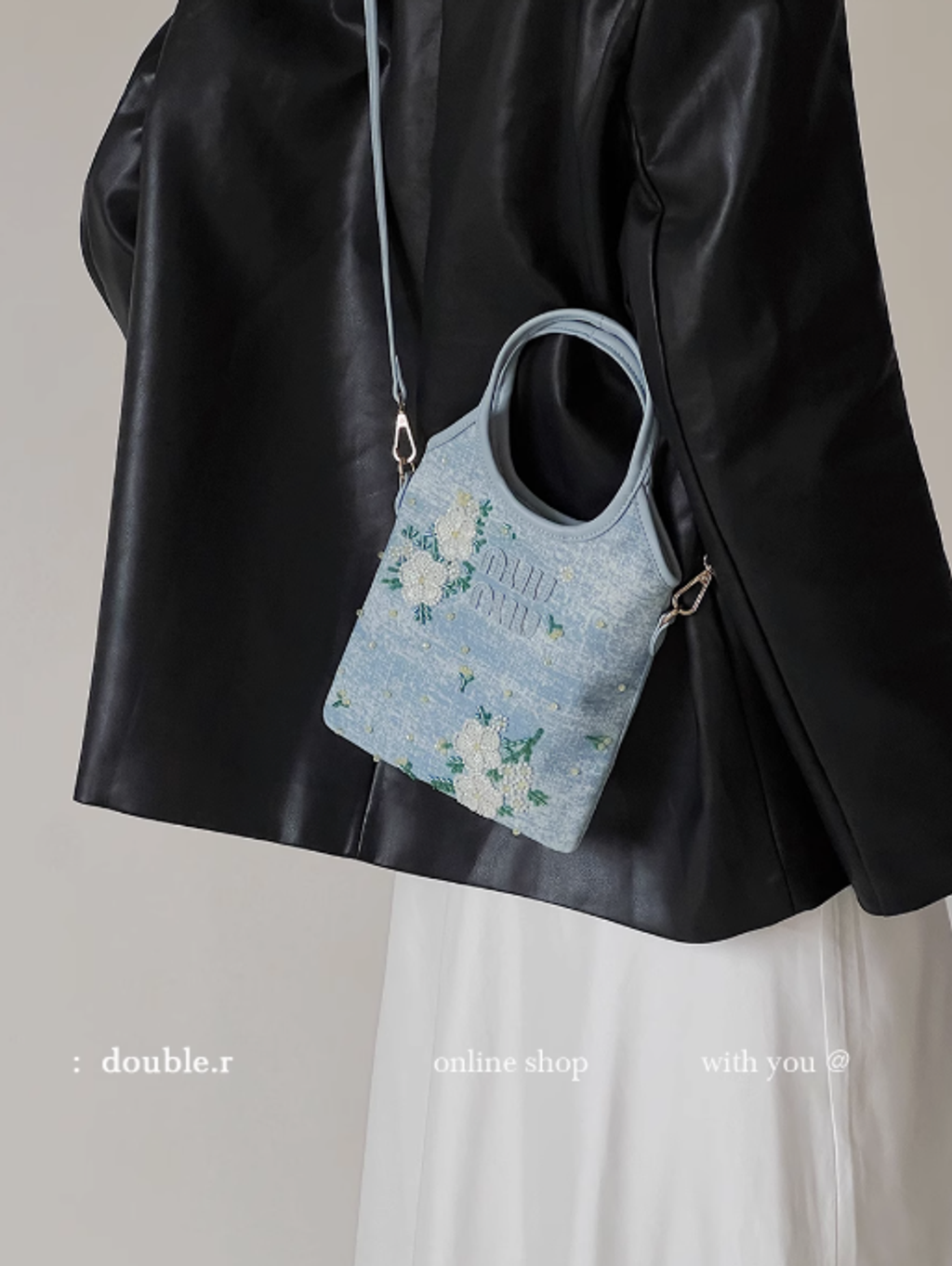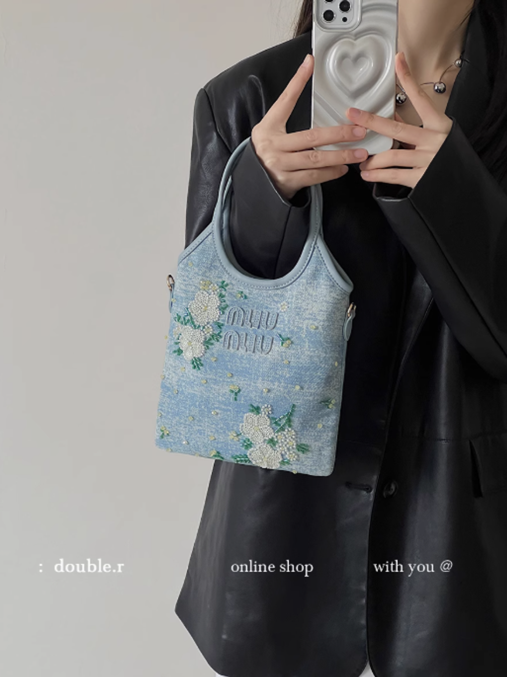 小瑞靚包牛仔自由重工萬針刺繡牛仔托特包女2025新款手提斜挎包