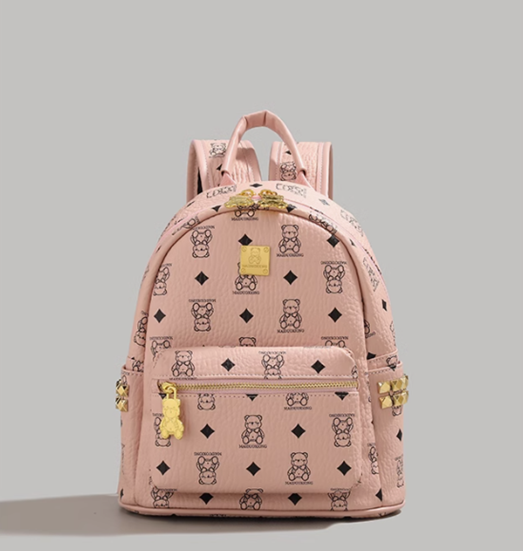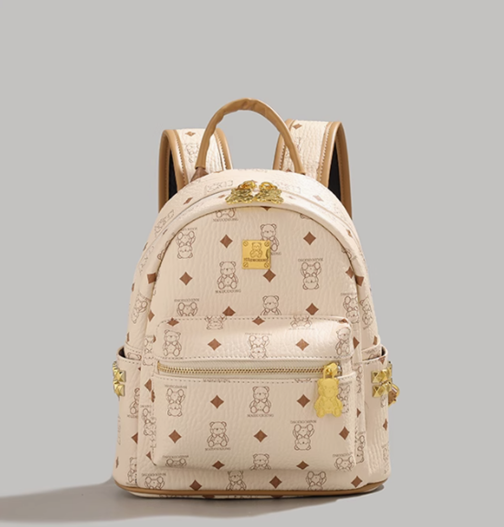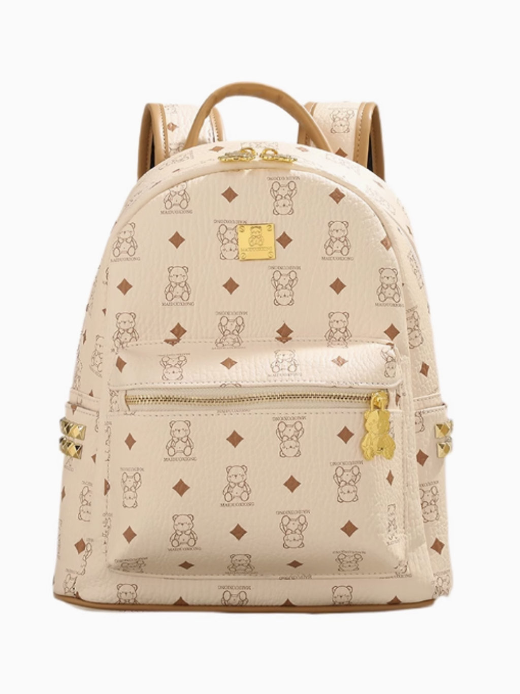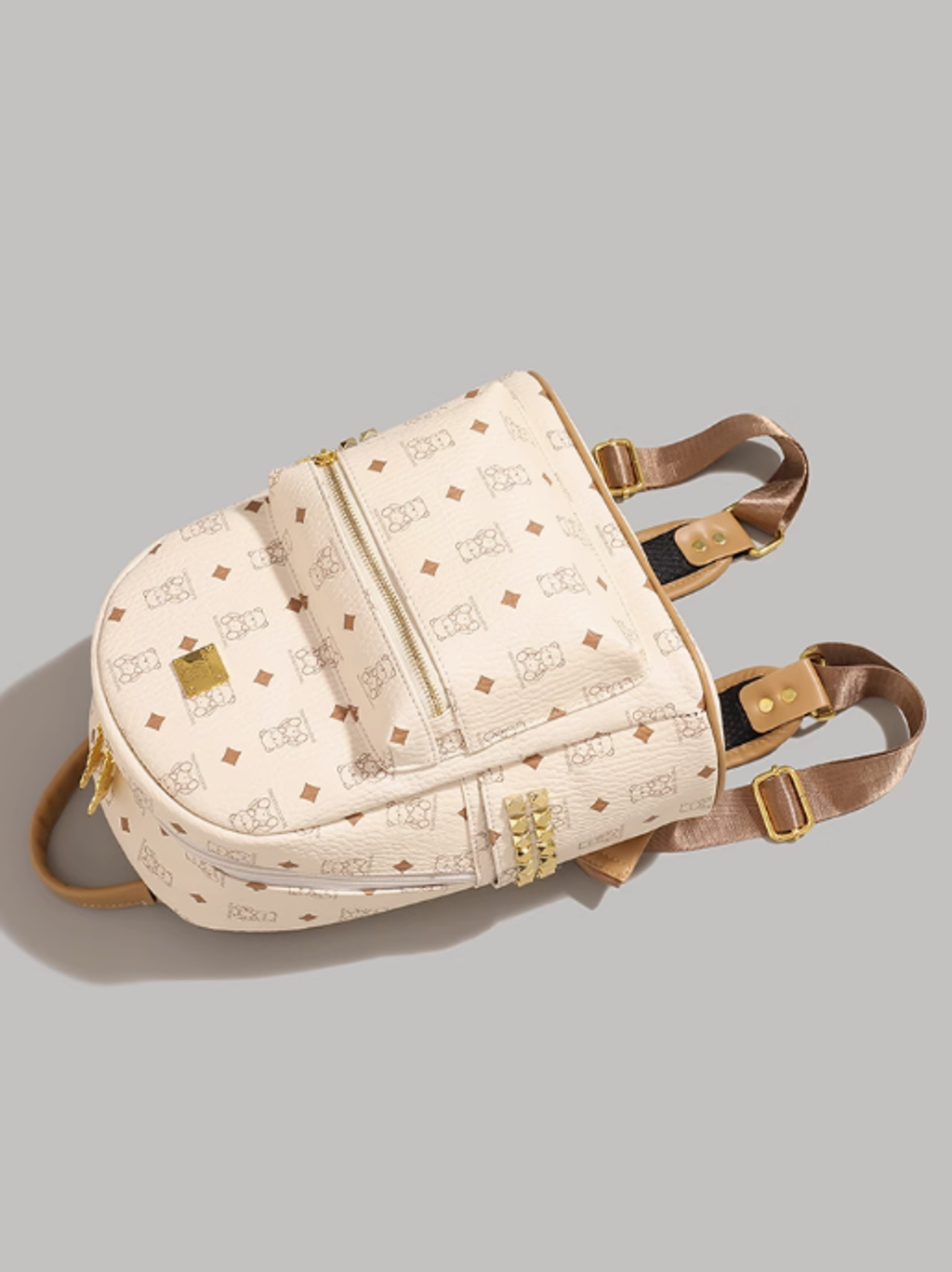 UR女大學生上課雙肩包包女2024新款潮可愛印花背包百搭大容量書包