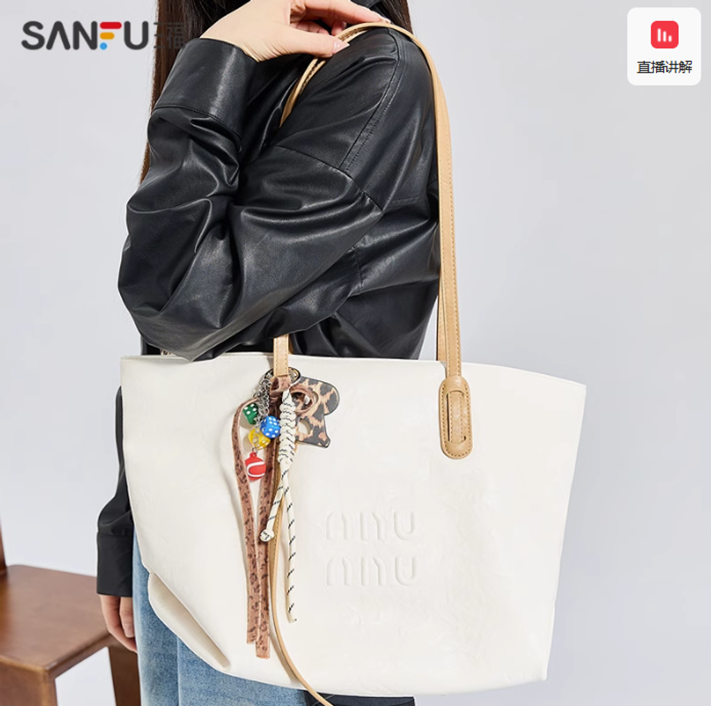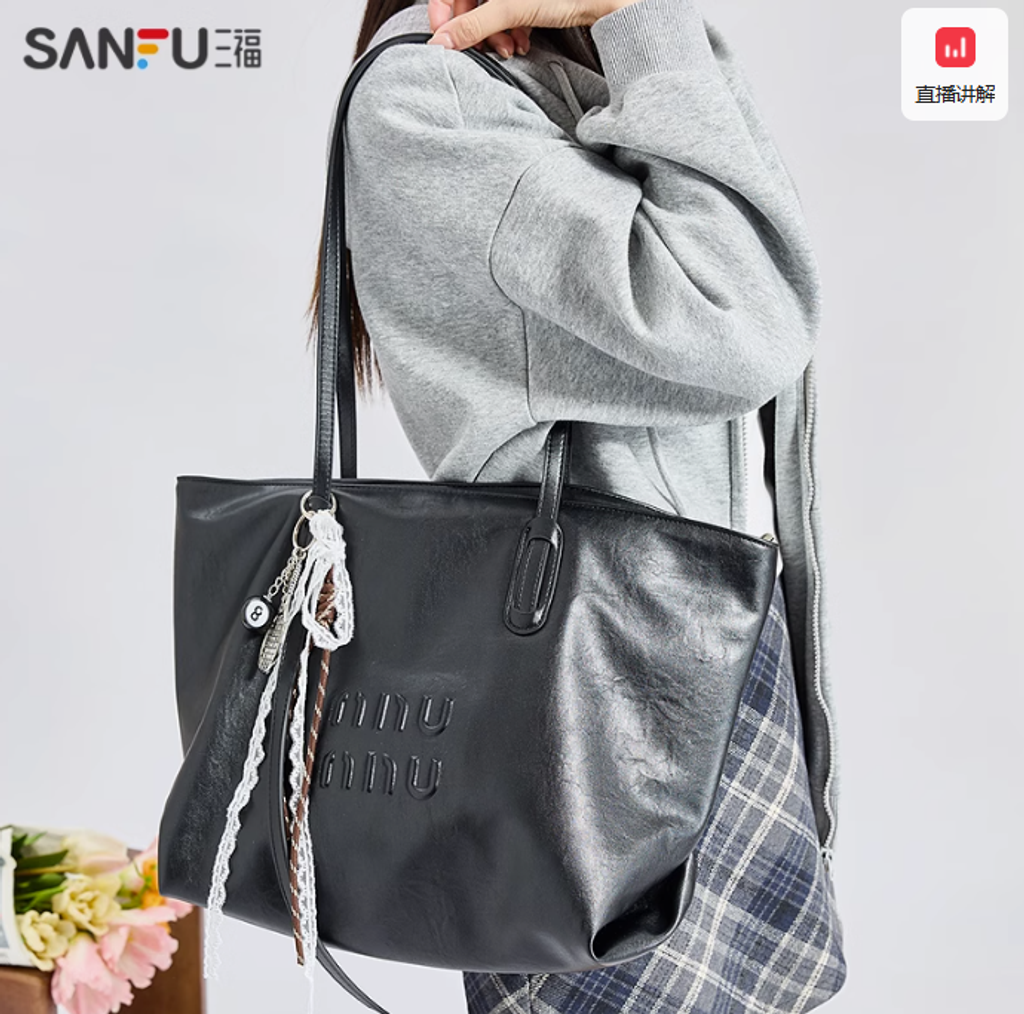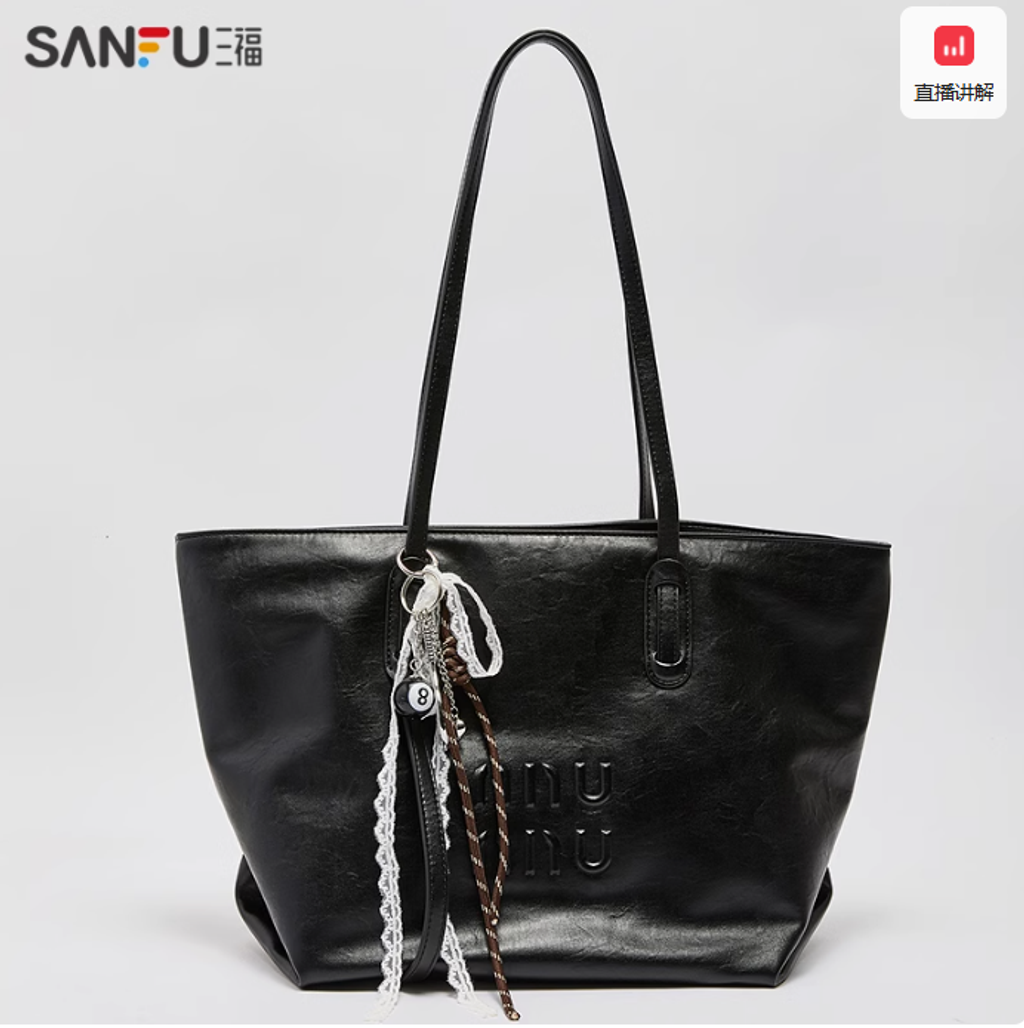 三福包包托特包大容量女质感上班通勤腋下包黑色单肩包大学生上课