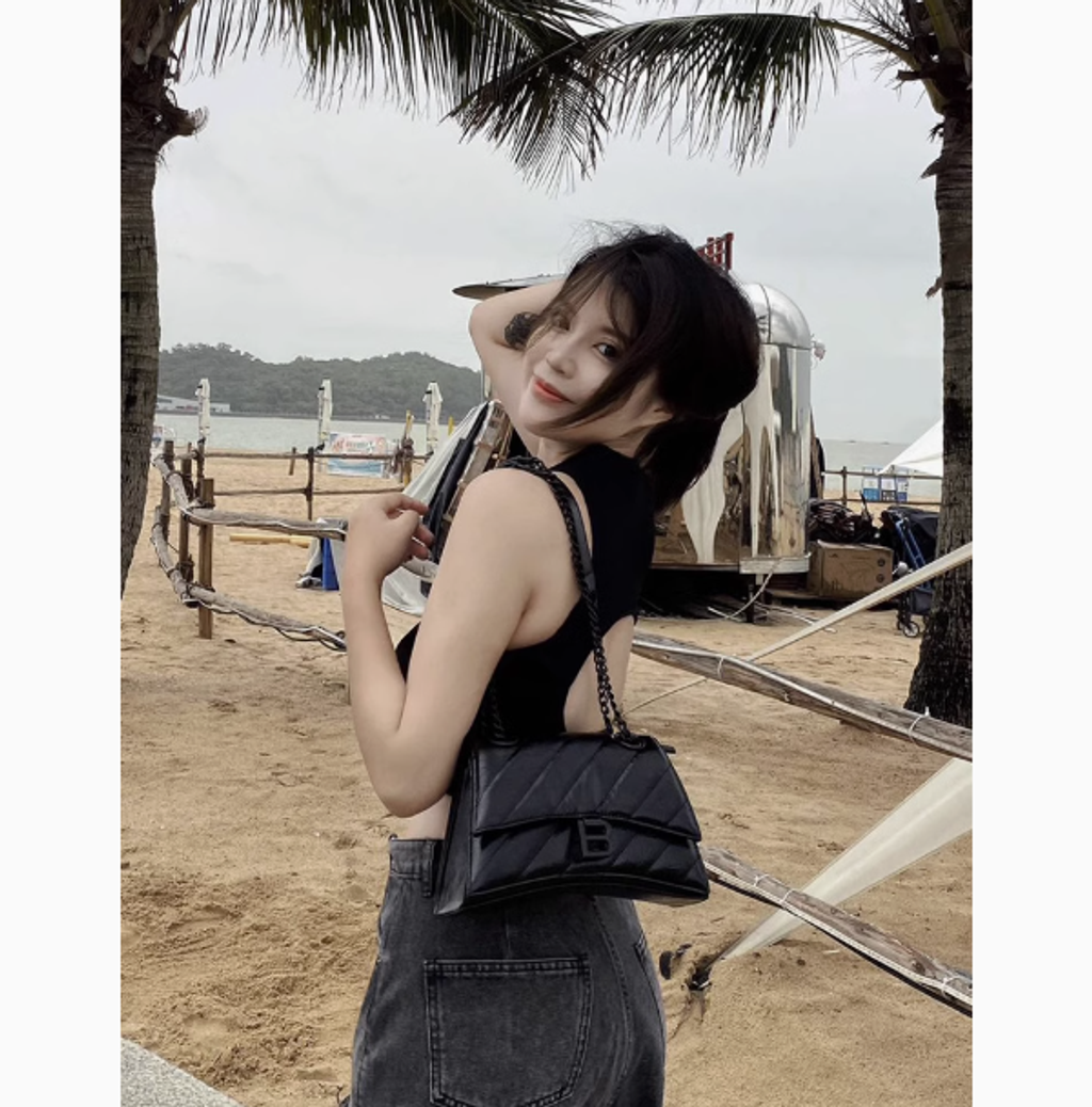 B家包包女夏季2025年新款爆款沙漏包高級感繡線斜挎包鏈條腋下包