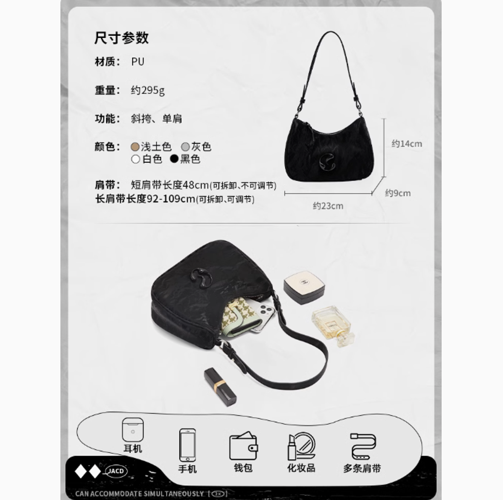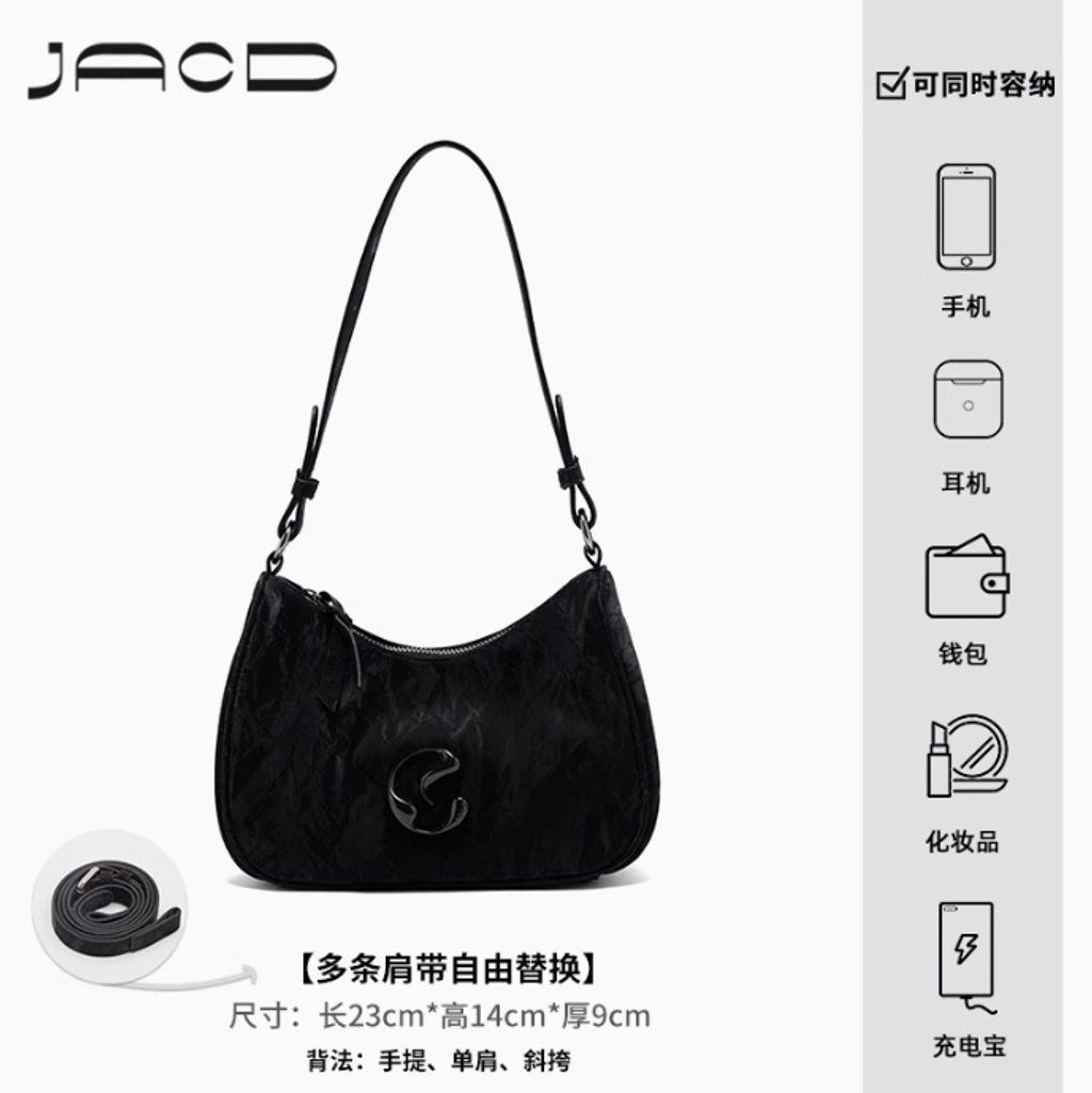 JACD包包女2025新款春夏黑色腋下包輕奢小眾設計高級感單肩斜挎包