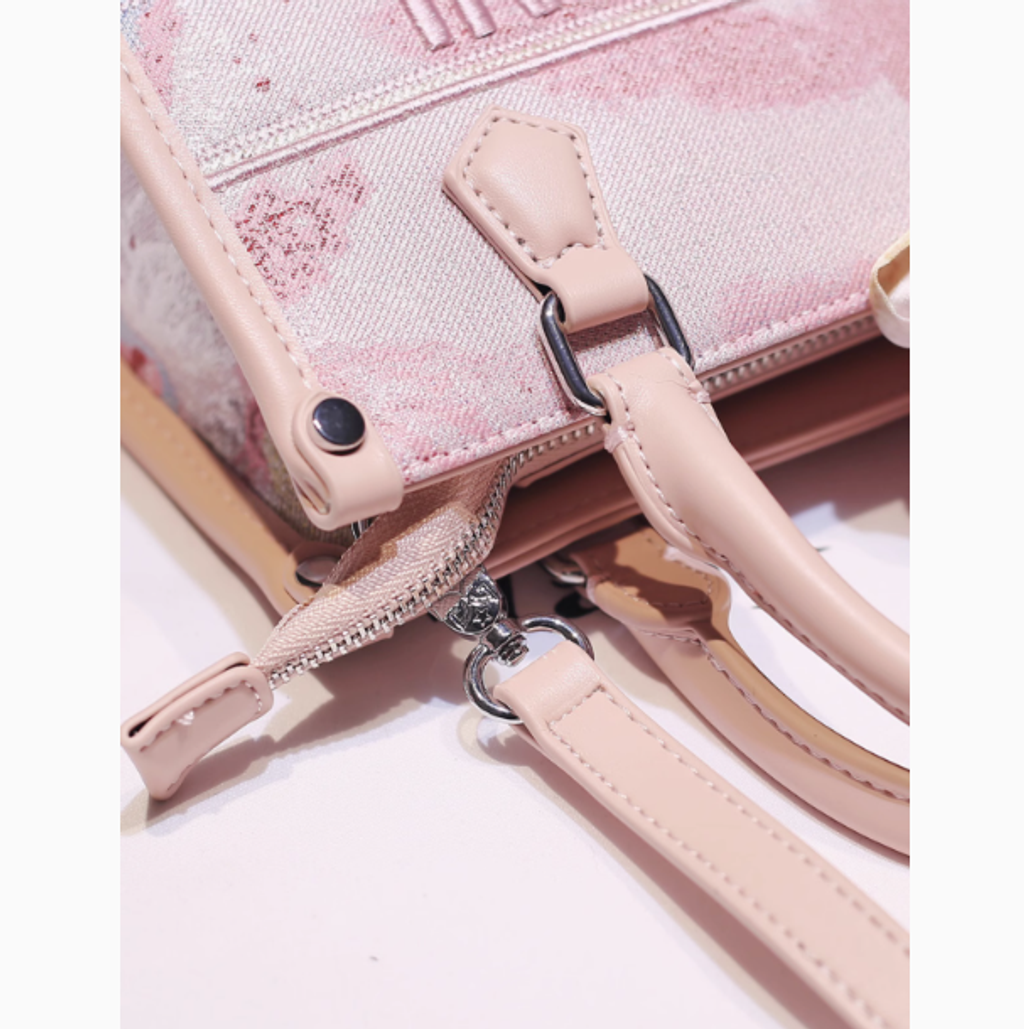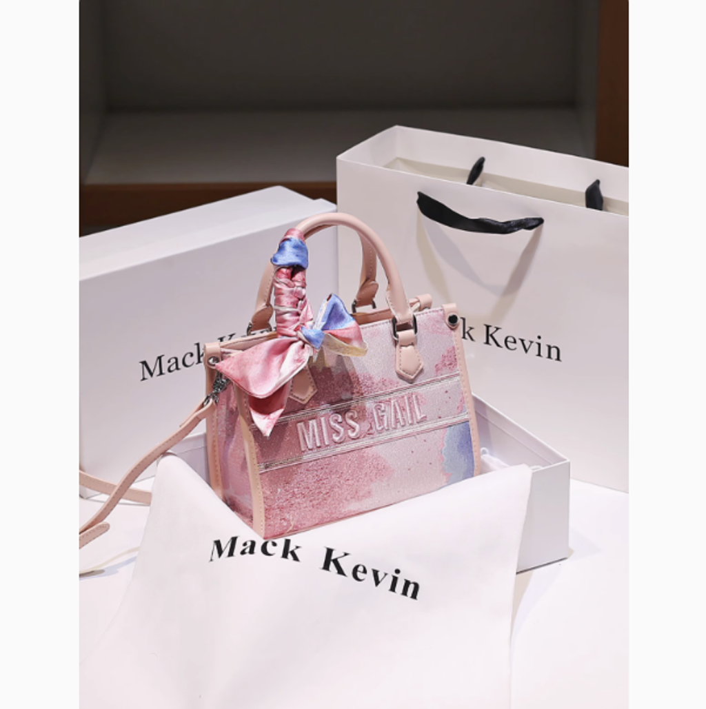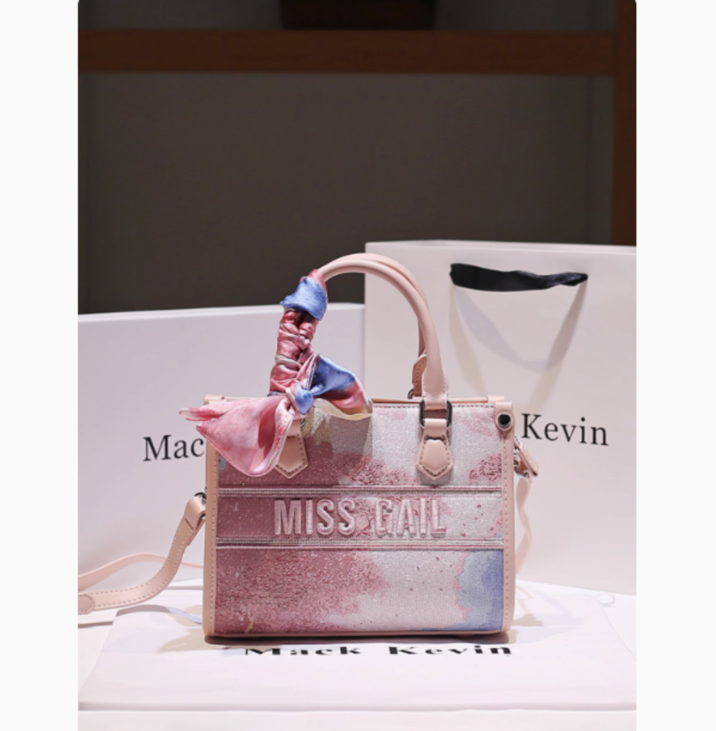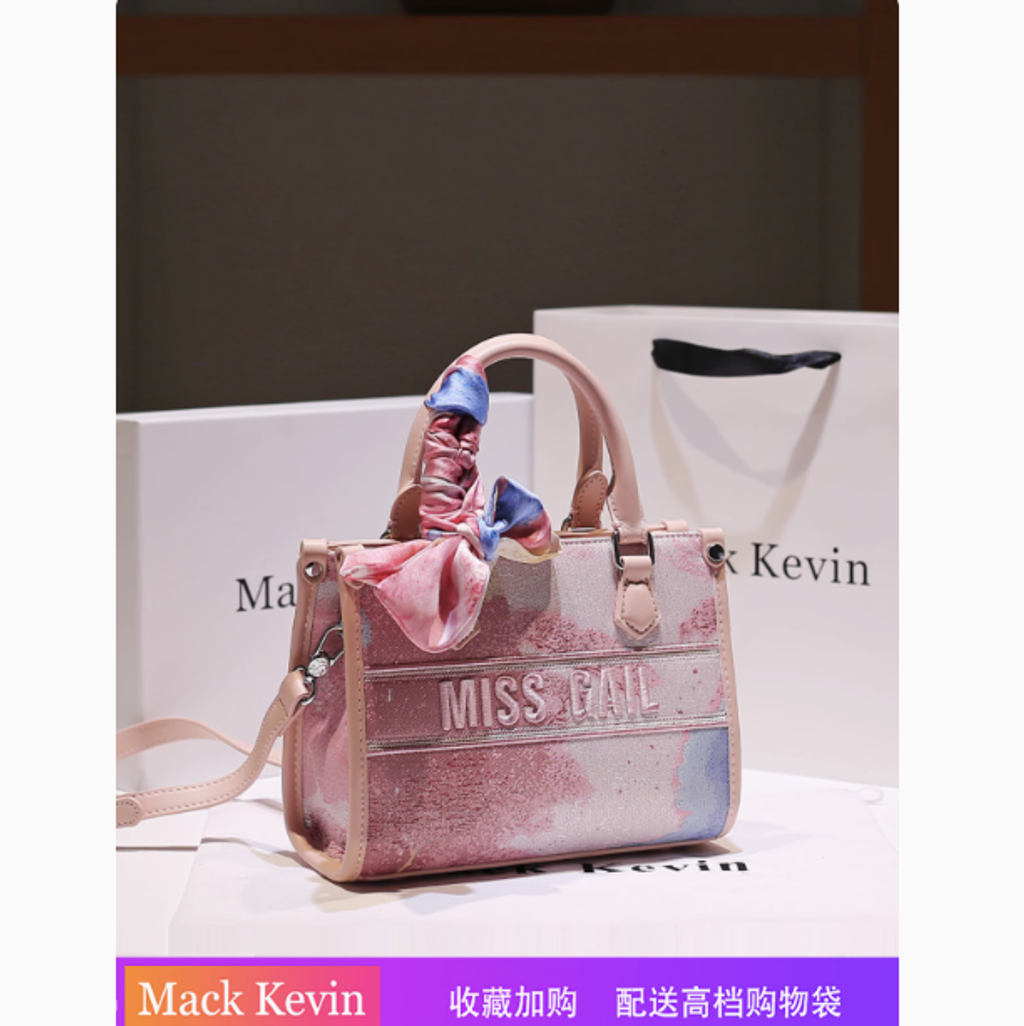 MackKevin 粉色漸變刺繡托特包包2025新款小眾設計百搭單肩斜挎包