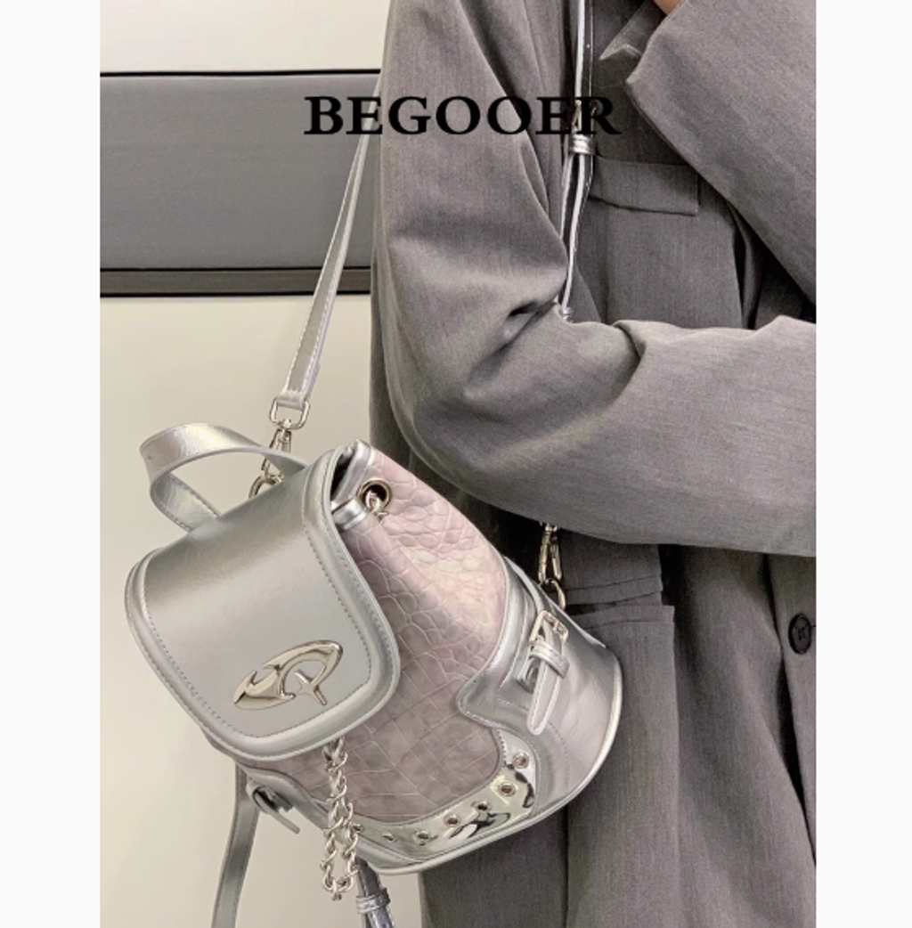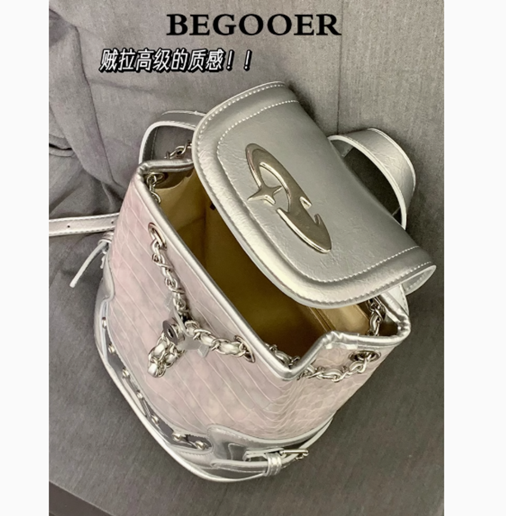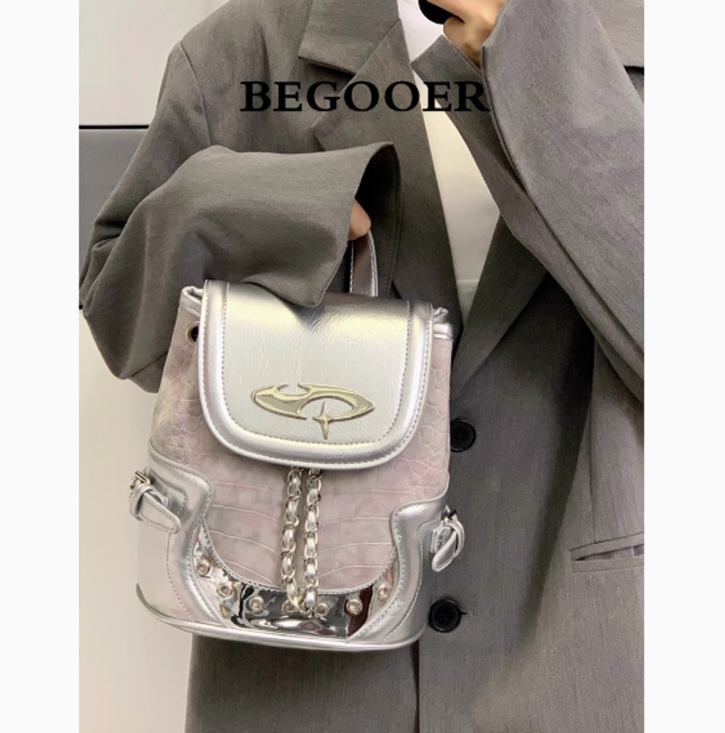 BEGOOER原創粉色雙肩包千禧辣妹小眾設計感背包通勤鏈條手提包女
