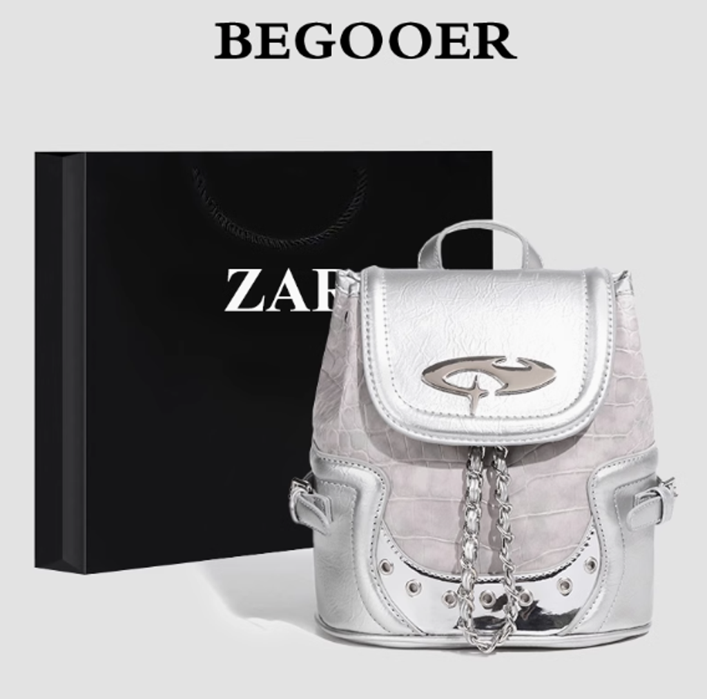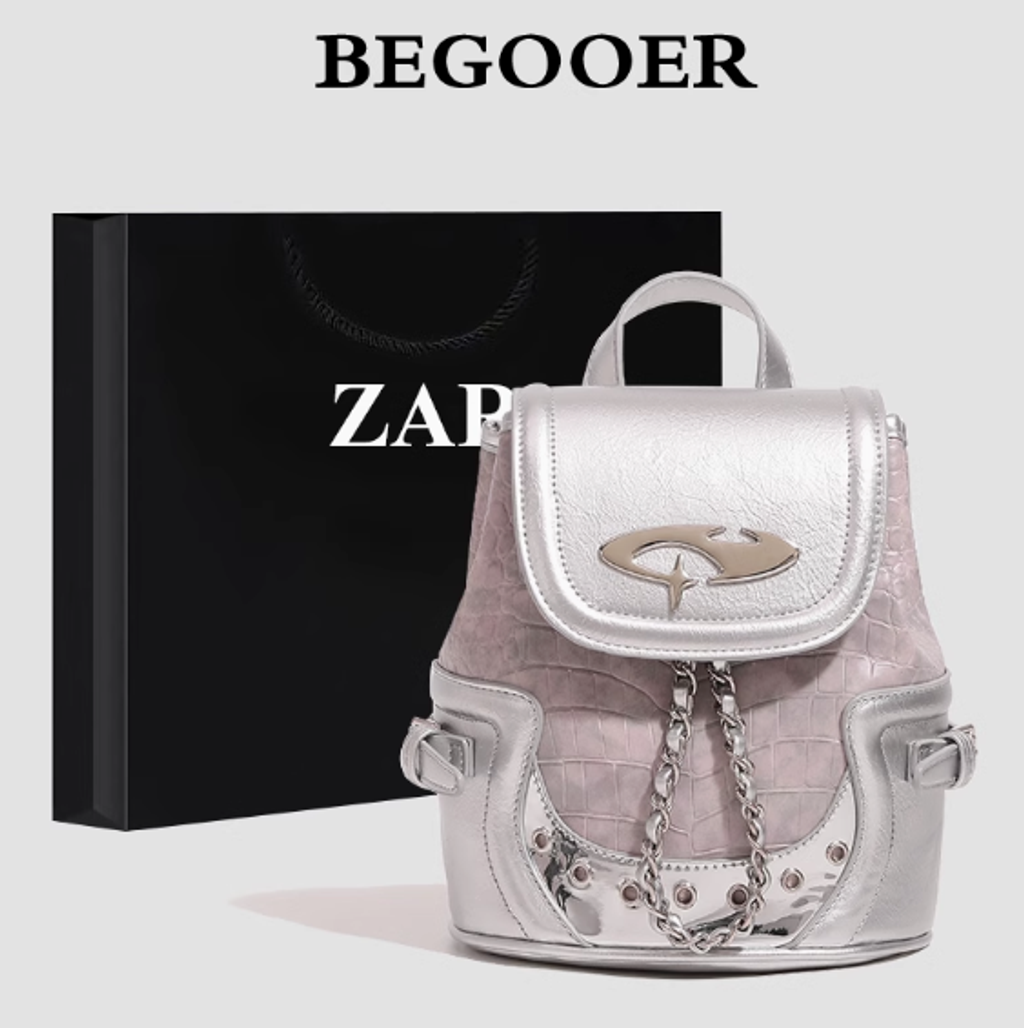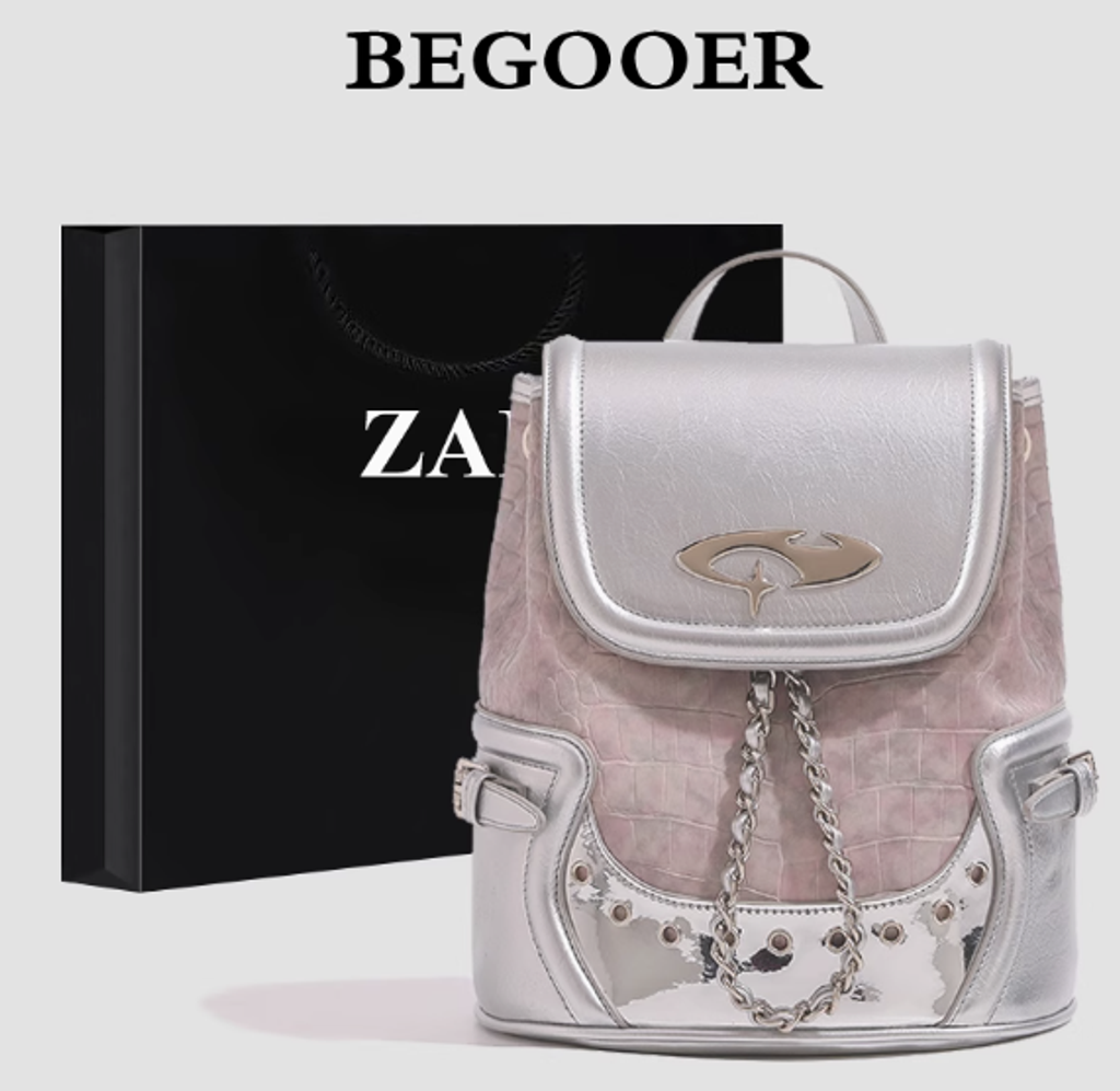 BEGOOER原創粉色雙肩包千禧辣妹小眾設計感背包通勤鏈條手提包女