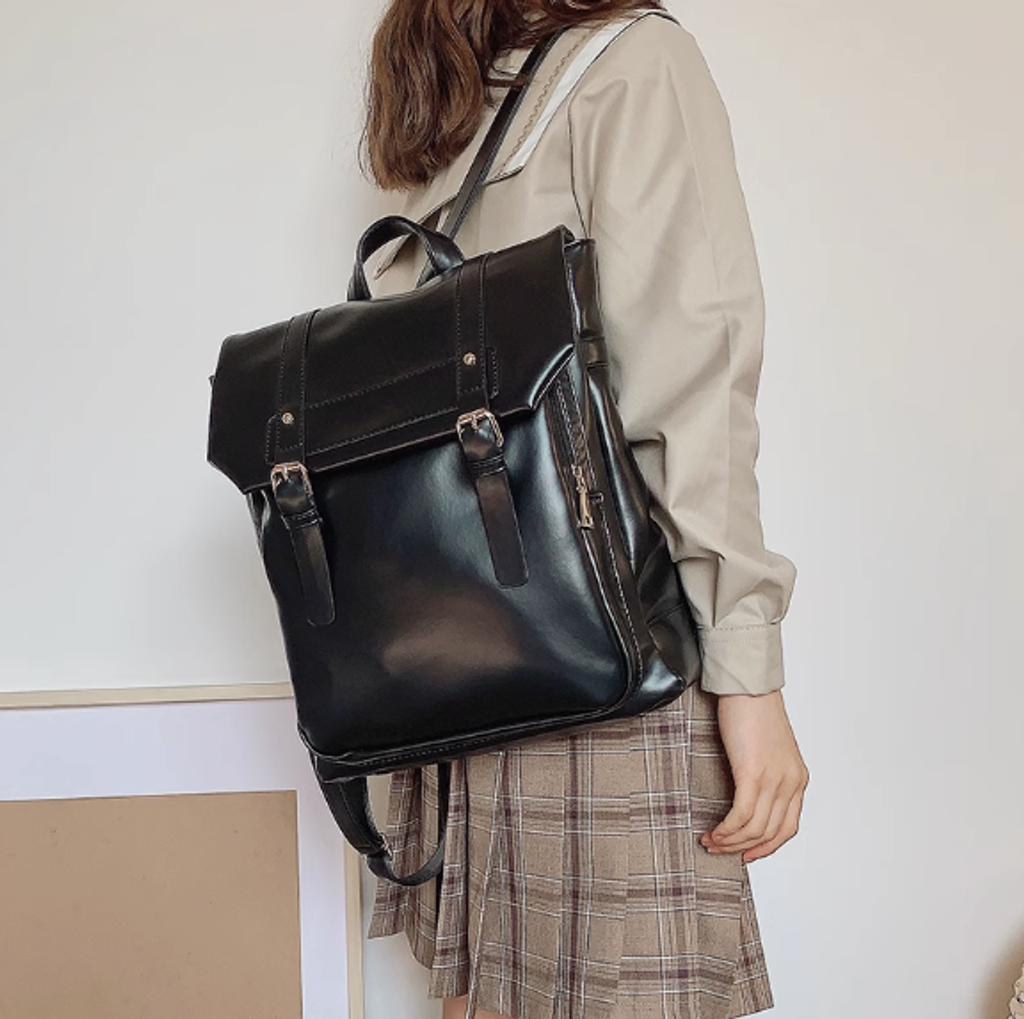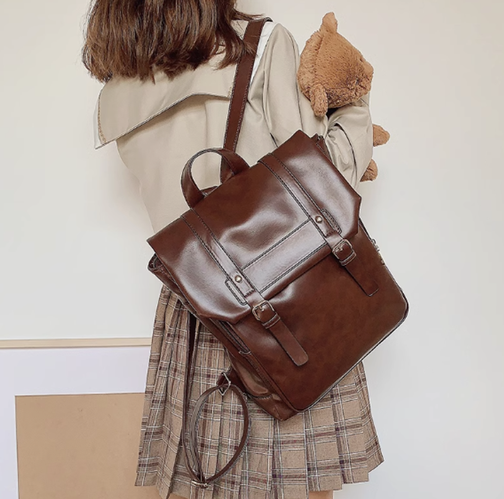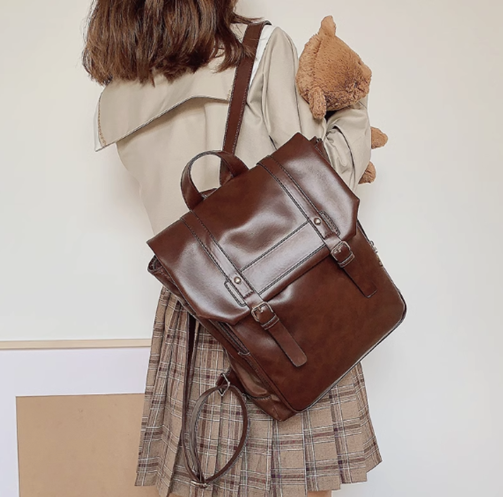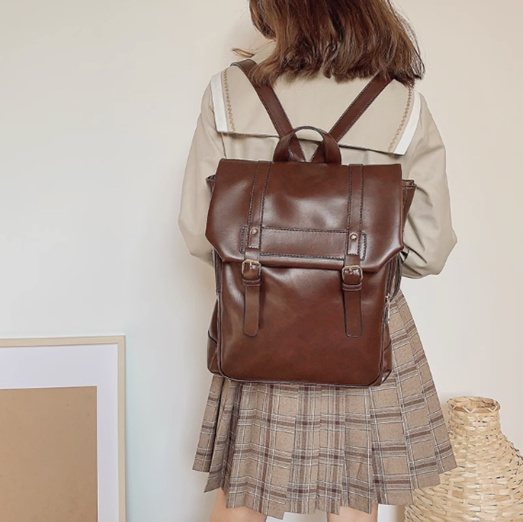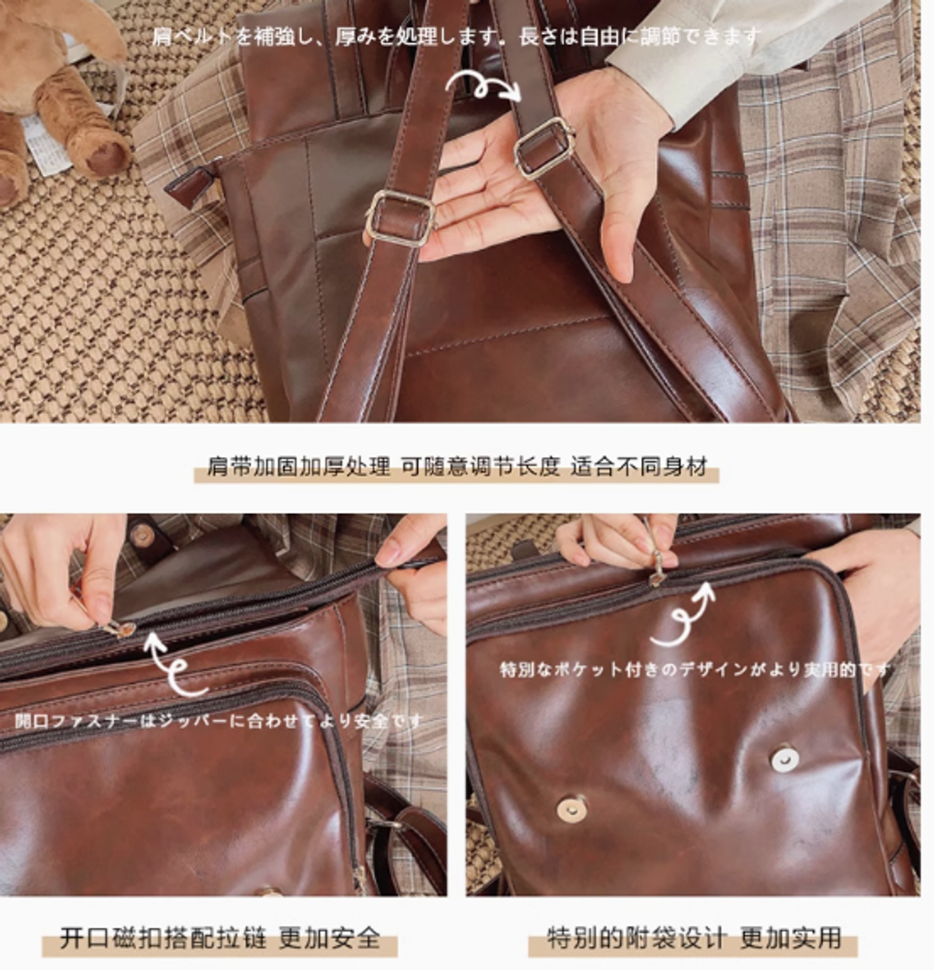 ClakaMke日系JK制服雙肩包學院風背包復古軟皮女包休閒劍橋包書包