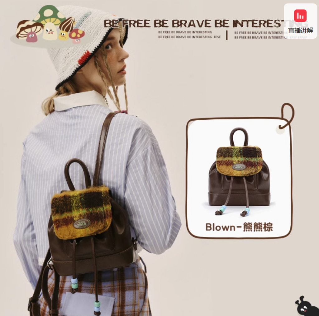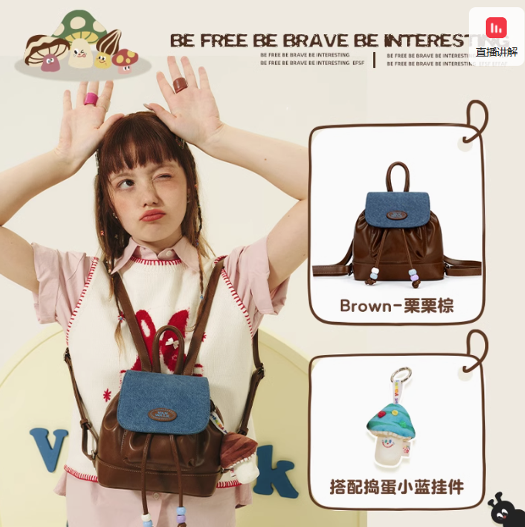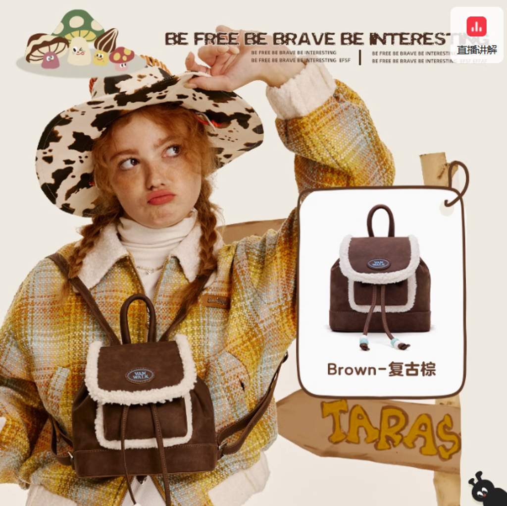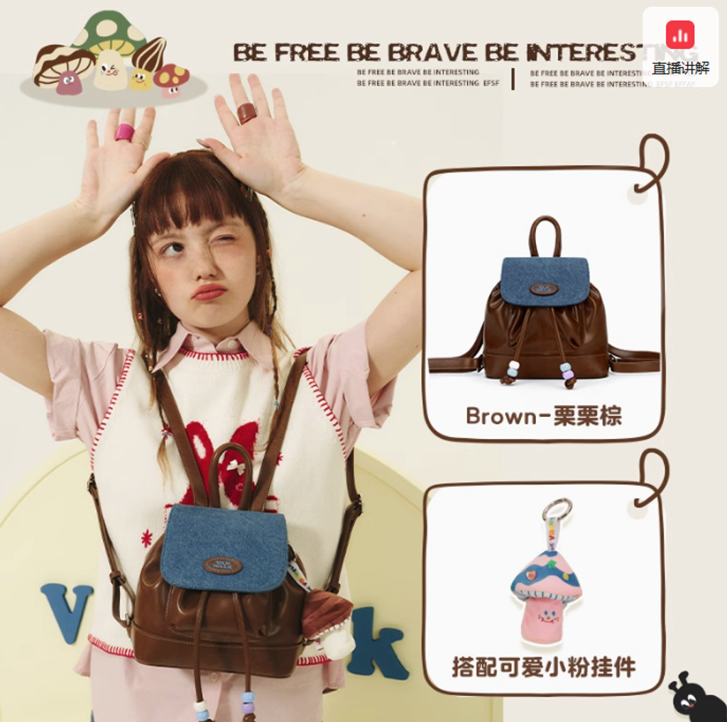 VANWALK春日牧場 復古可愛牛仔少女雙肩包ins學生小背包小眾書包
