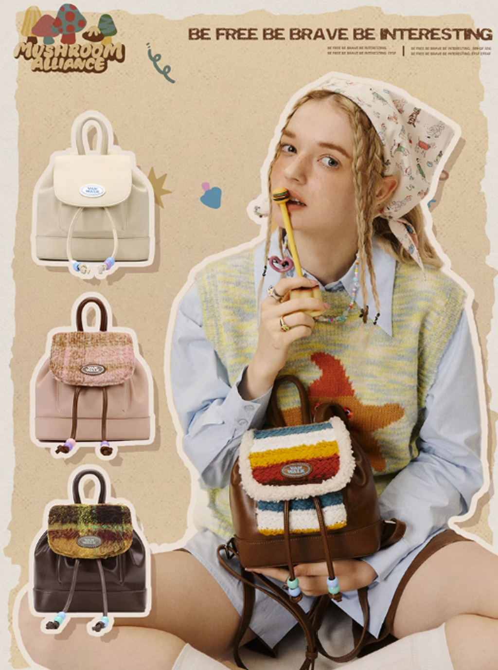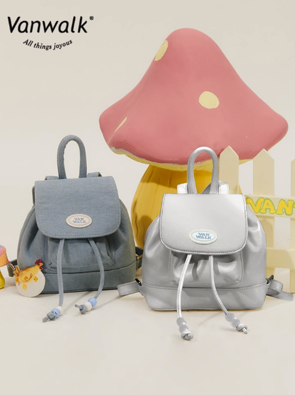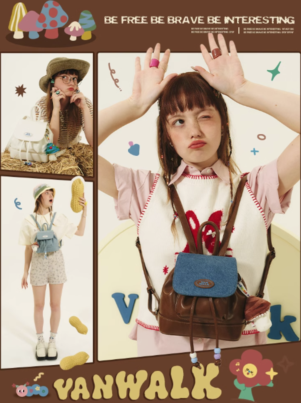 VANWALK春日牧場 復古可愛牛仔少女雙肩包ins學生小背包小眾書包