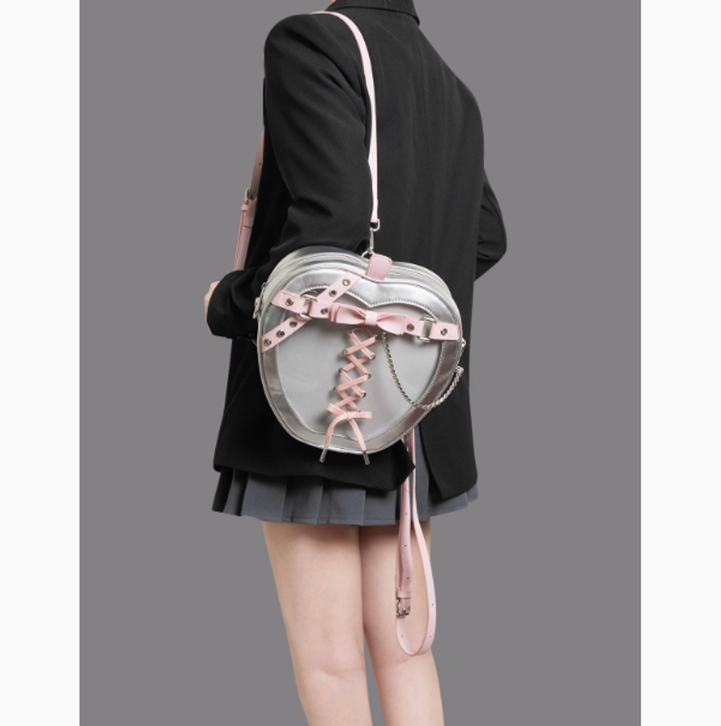 HIATUS原創暗黑風格皮帶鏈條蘋果雙肩痛包個性哥特綁帶蝴蝶結背包