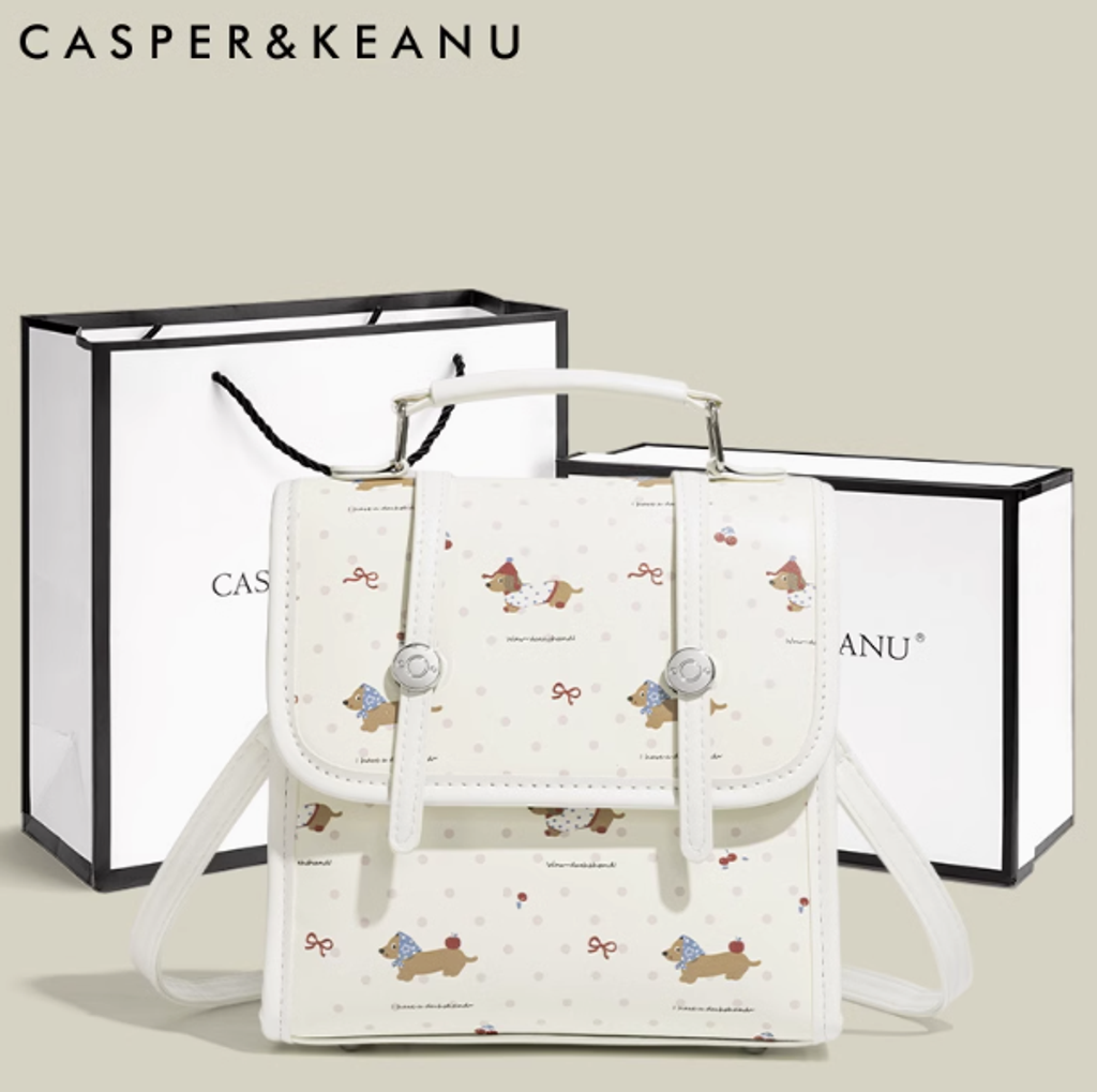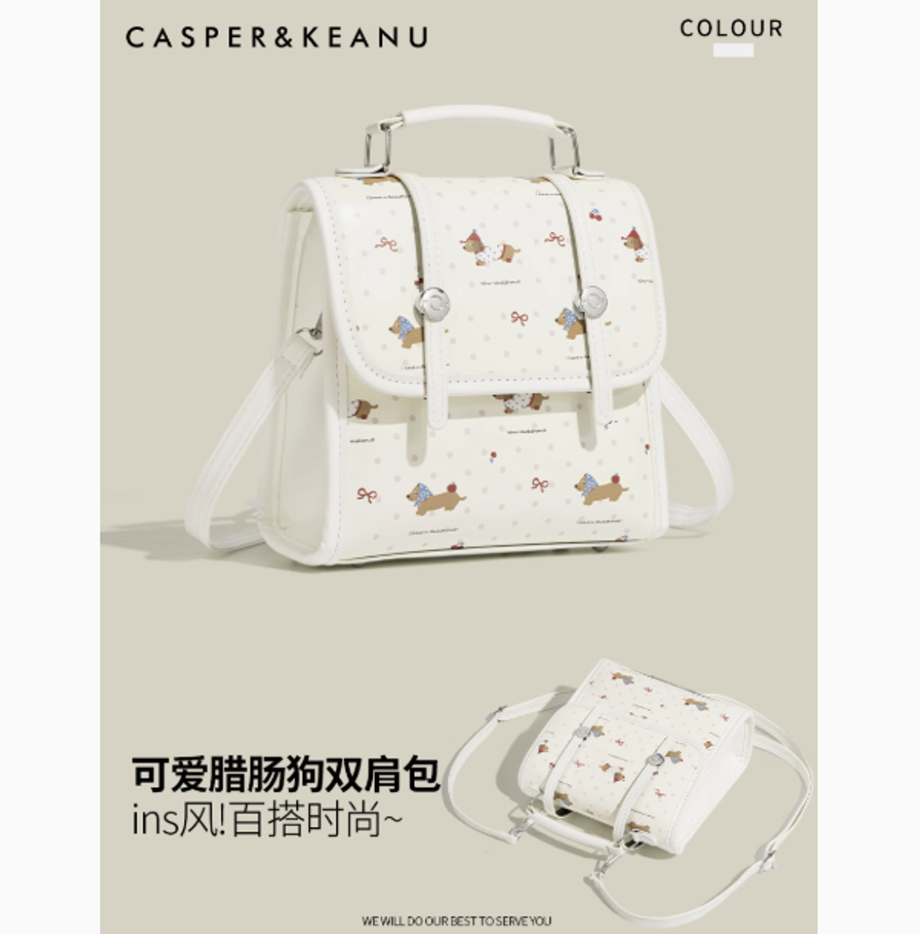 CASPER&KEANU可愛臘腸狗雙肩包女2025新款甜美少女時尚通勤斜挎包