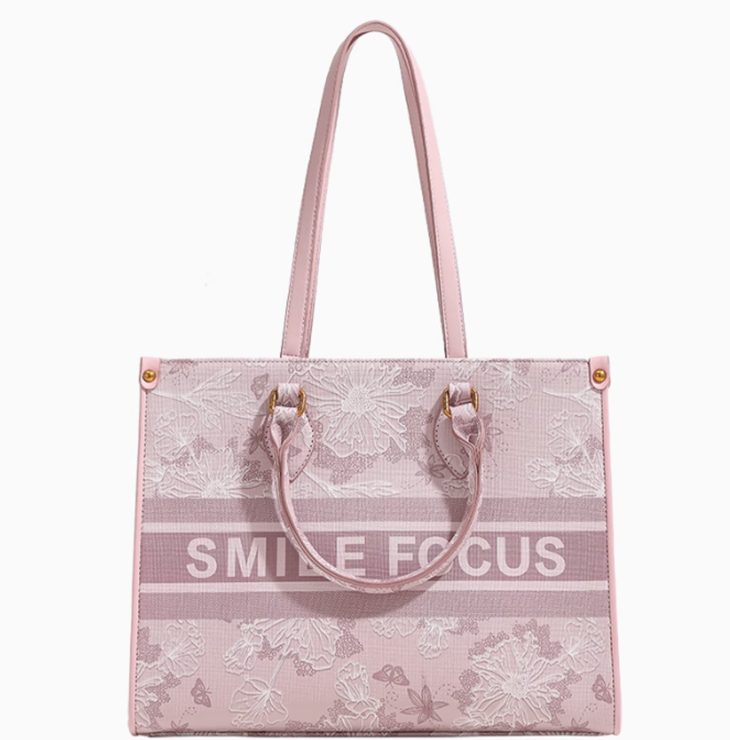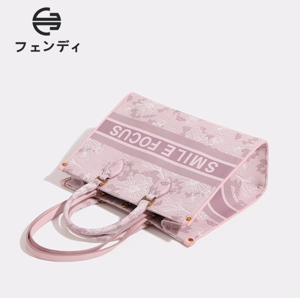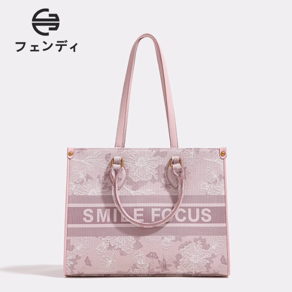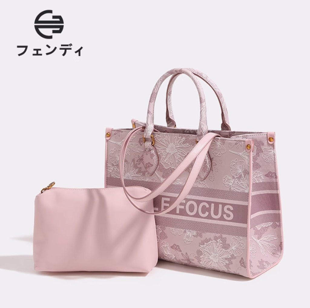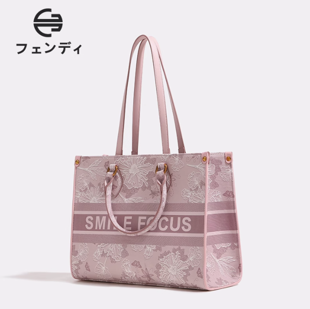 日本フェンディ真皮大容量粉色包包女士2025新款高級感手提托特包