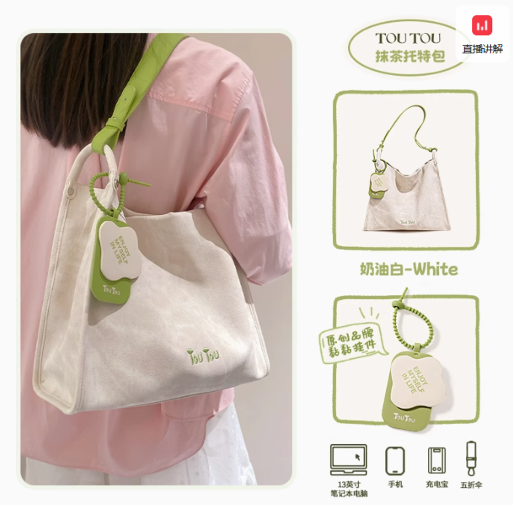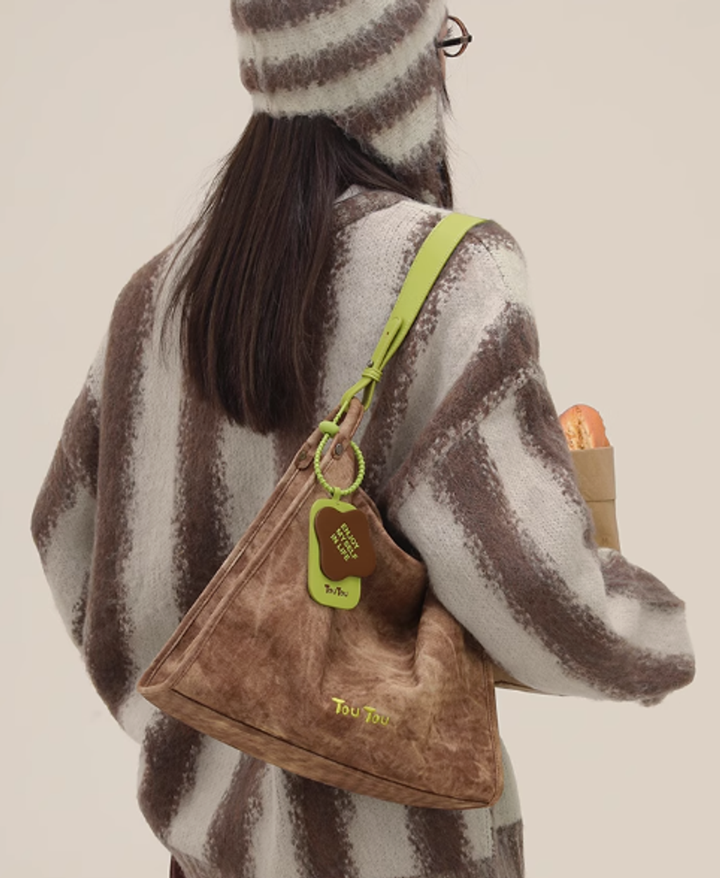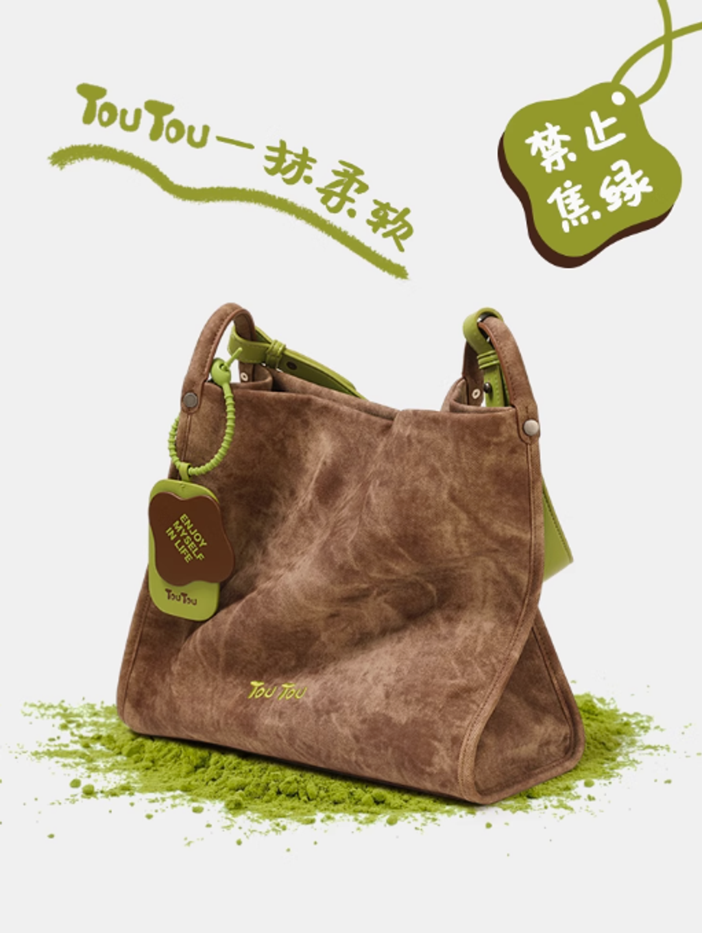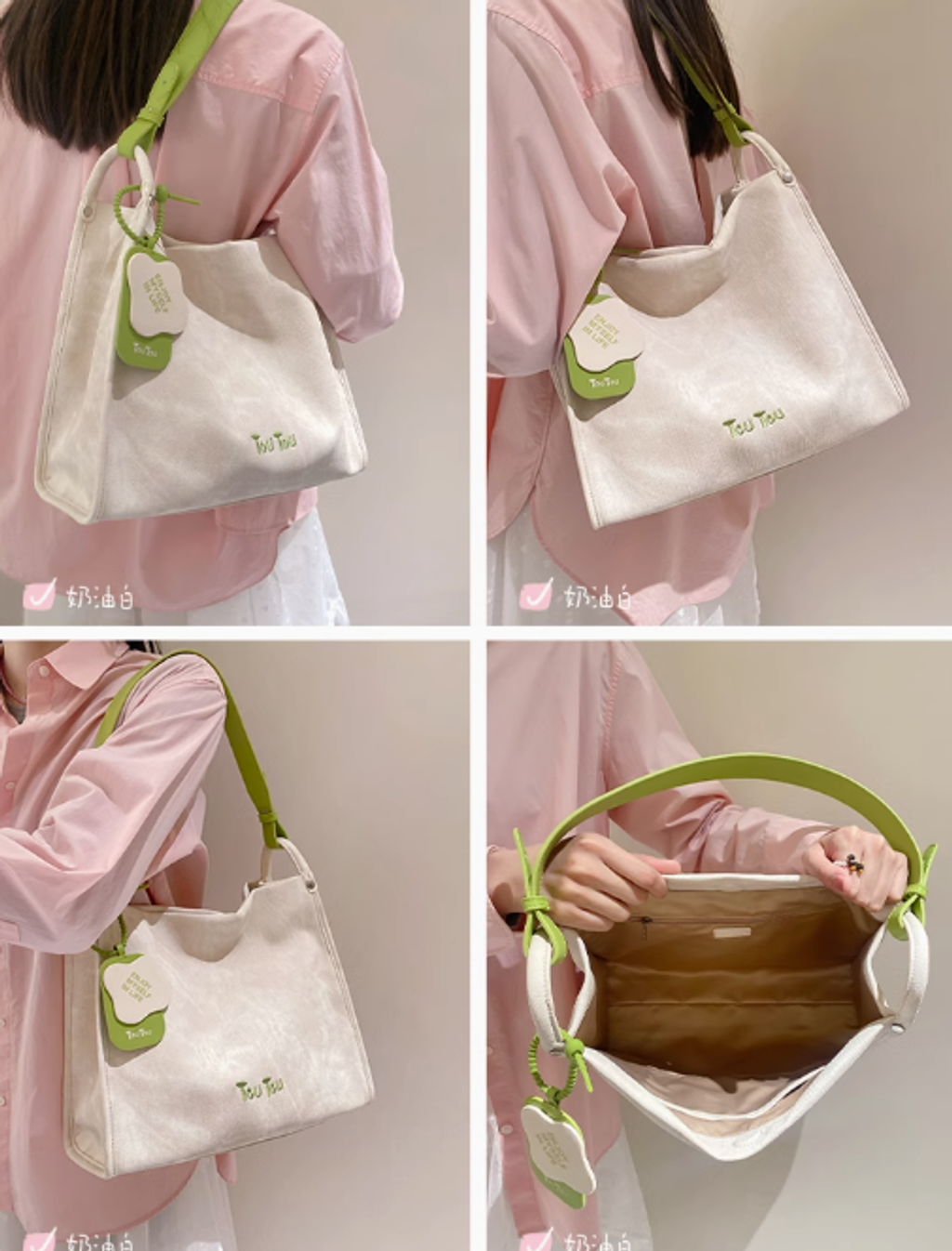 TOUTOU抹茶托特包2025春季新款撞色大容量通勤質感百搭腋下大包包