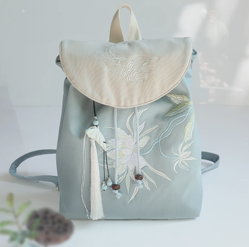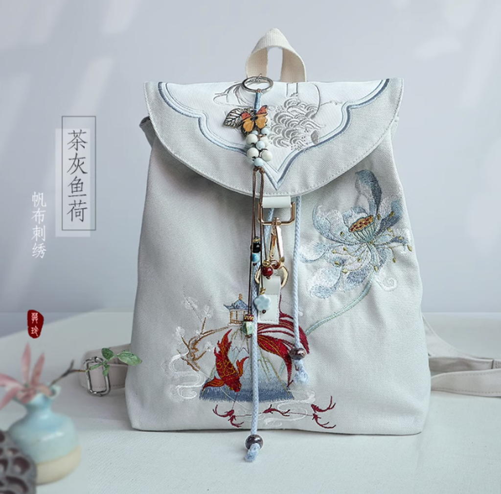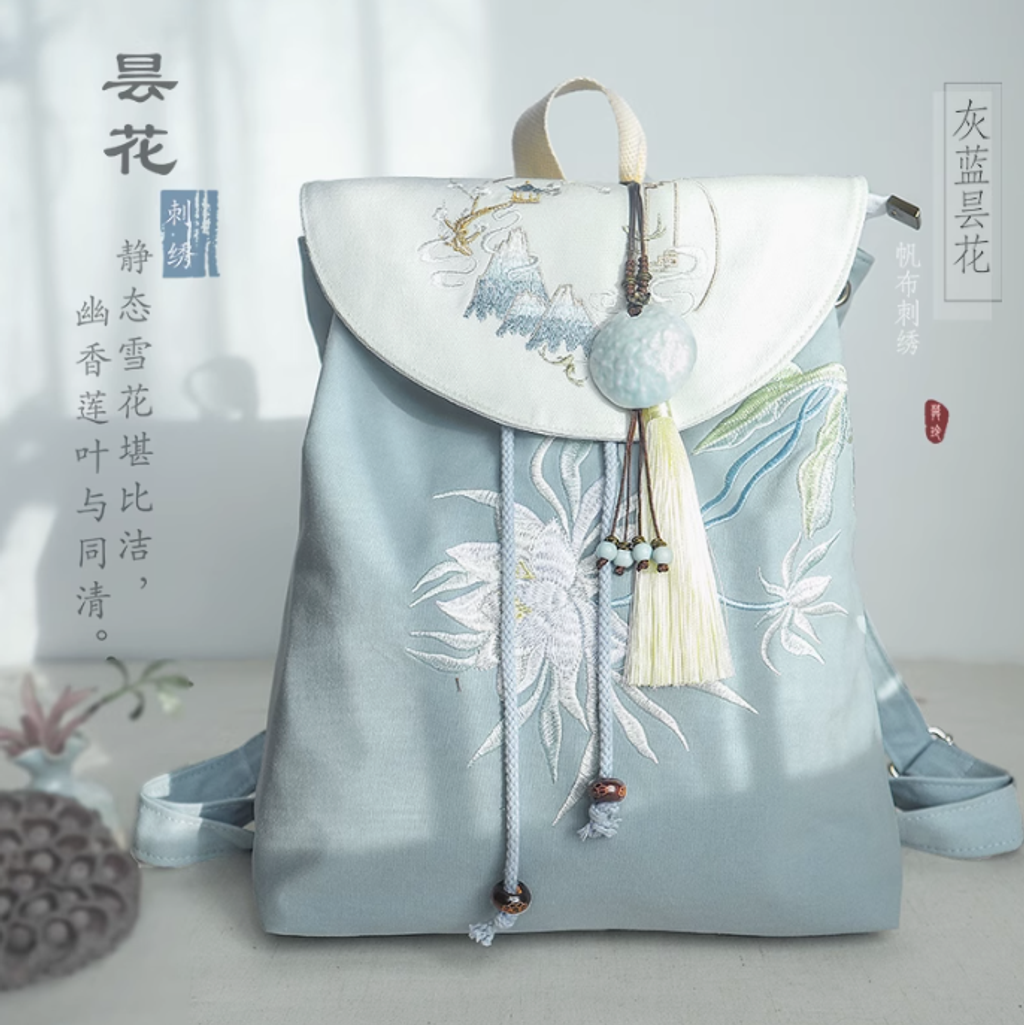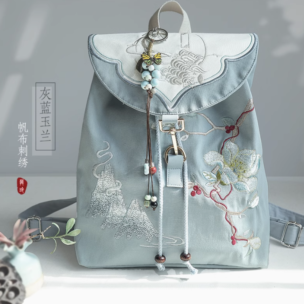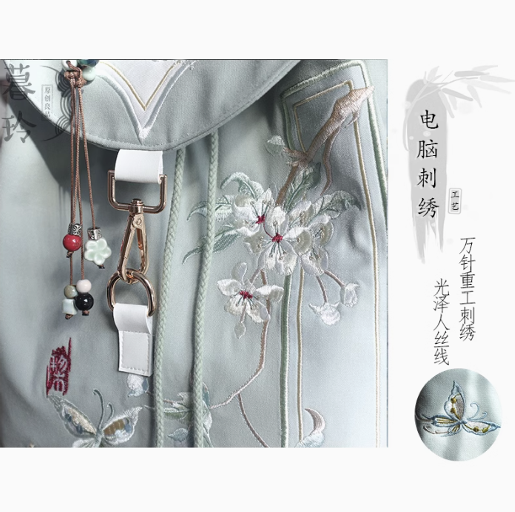 15吋書包原創復古中式古風漢服文藝刺繡拉鍊抽繩帆布電腦雙肩背包
