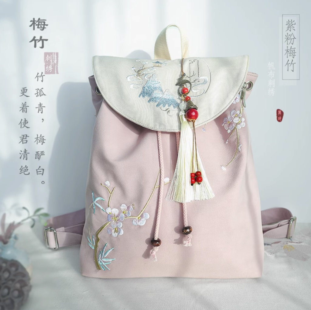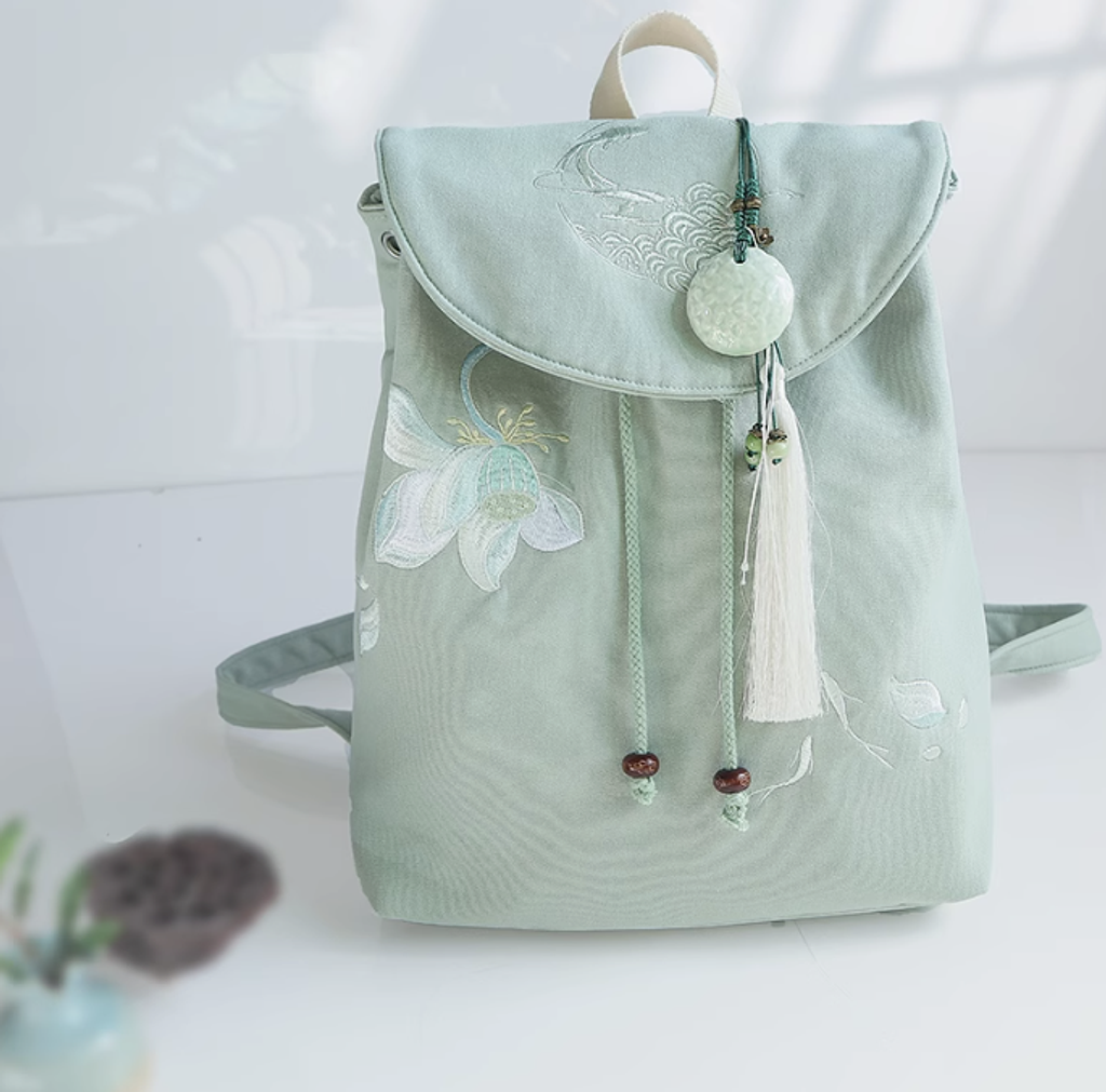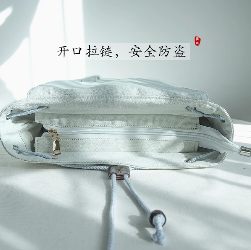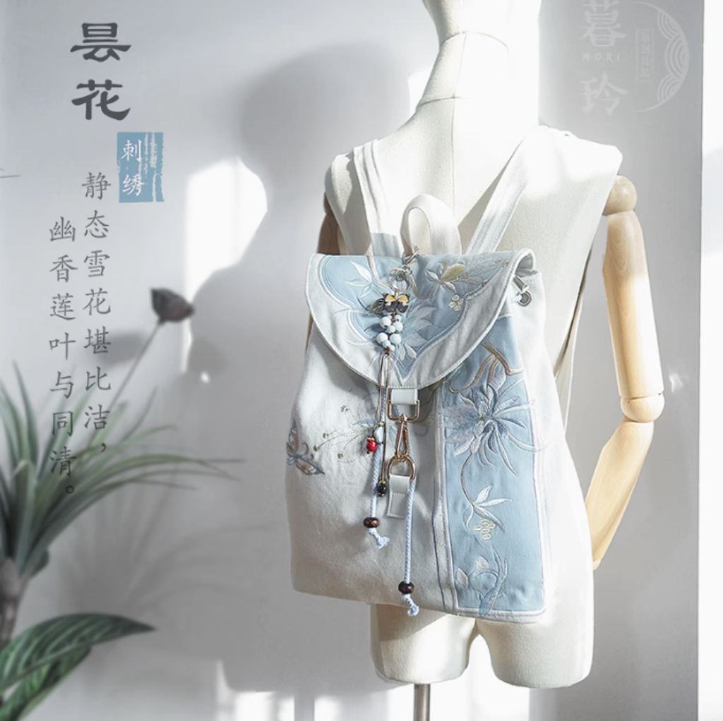 15吋書包原創復古中式古風漢服文藝刺繡拉鍊抽繩帆布電腦雙肩背包