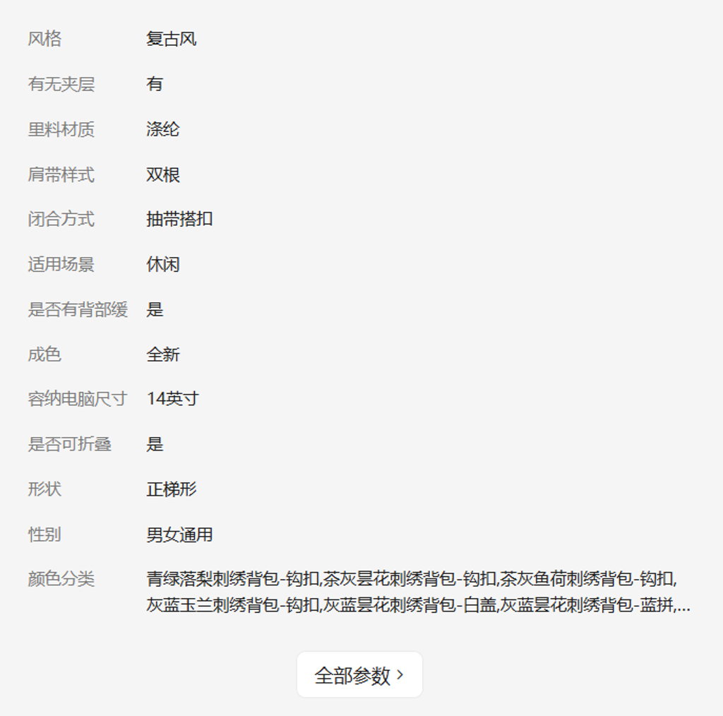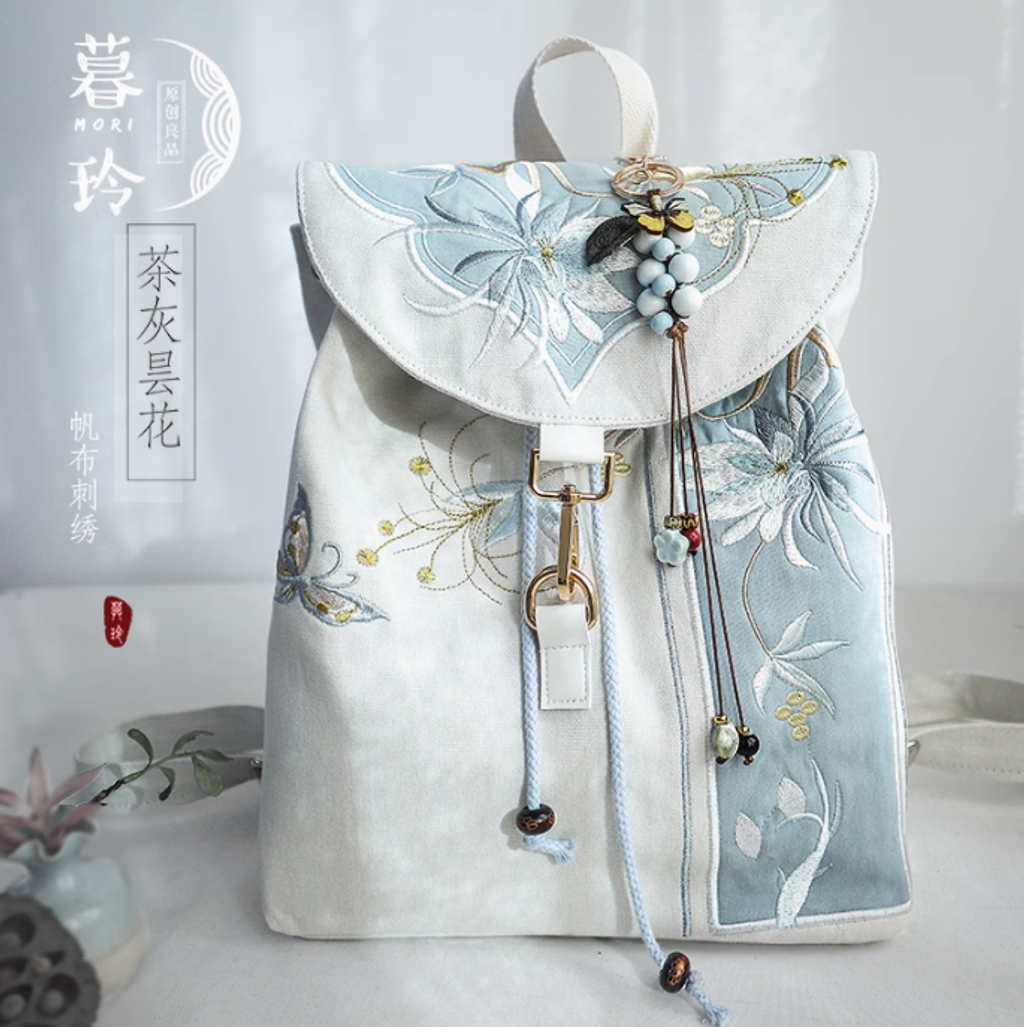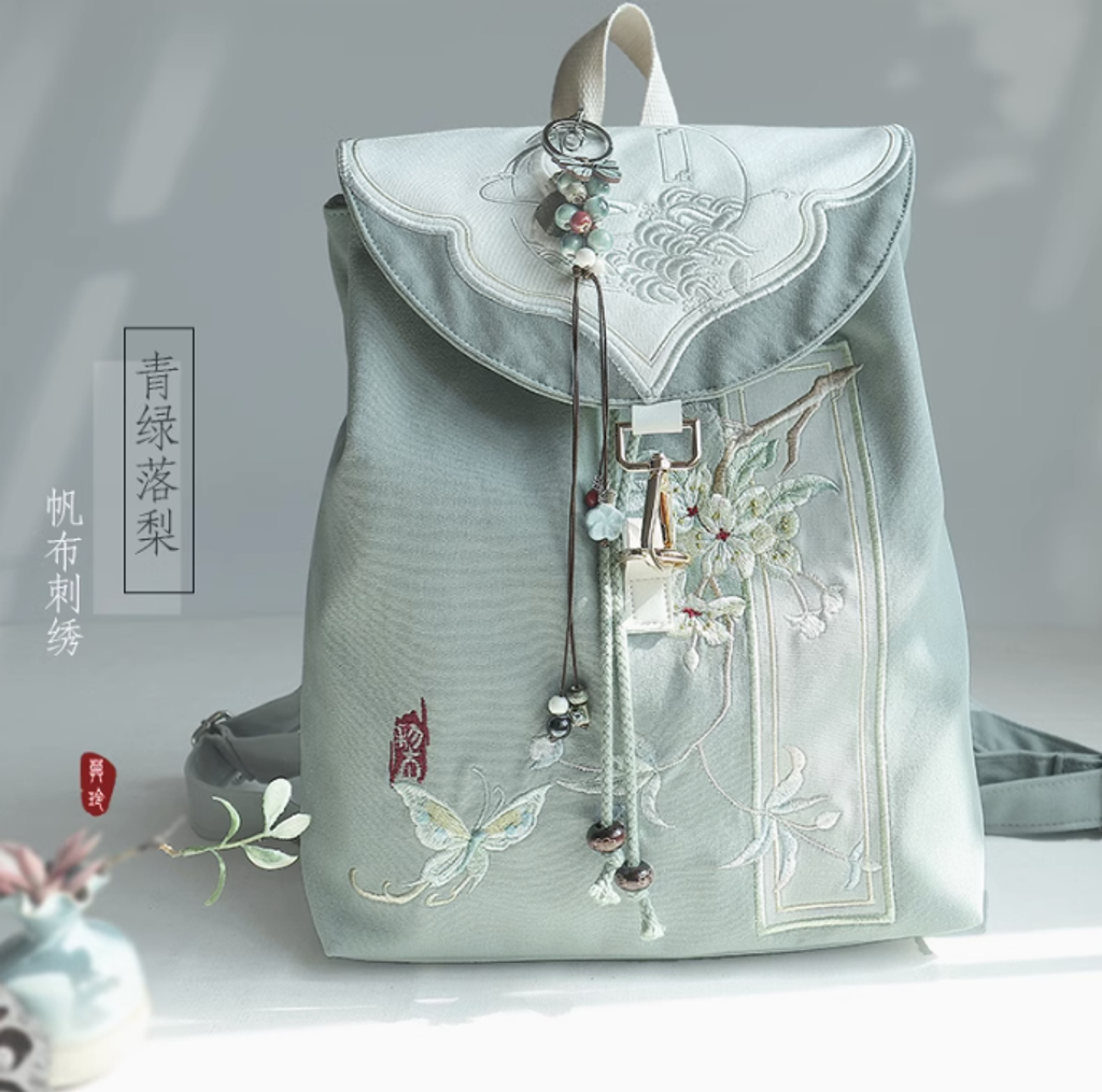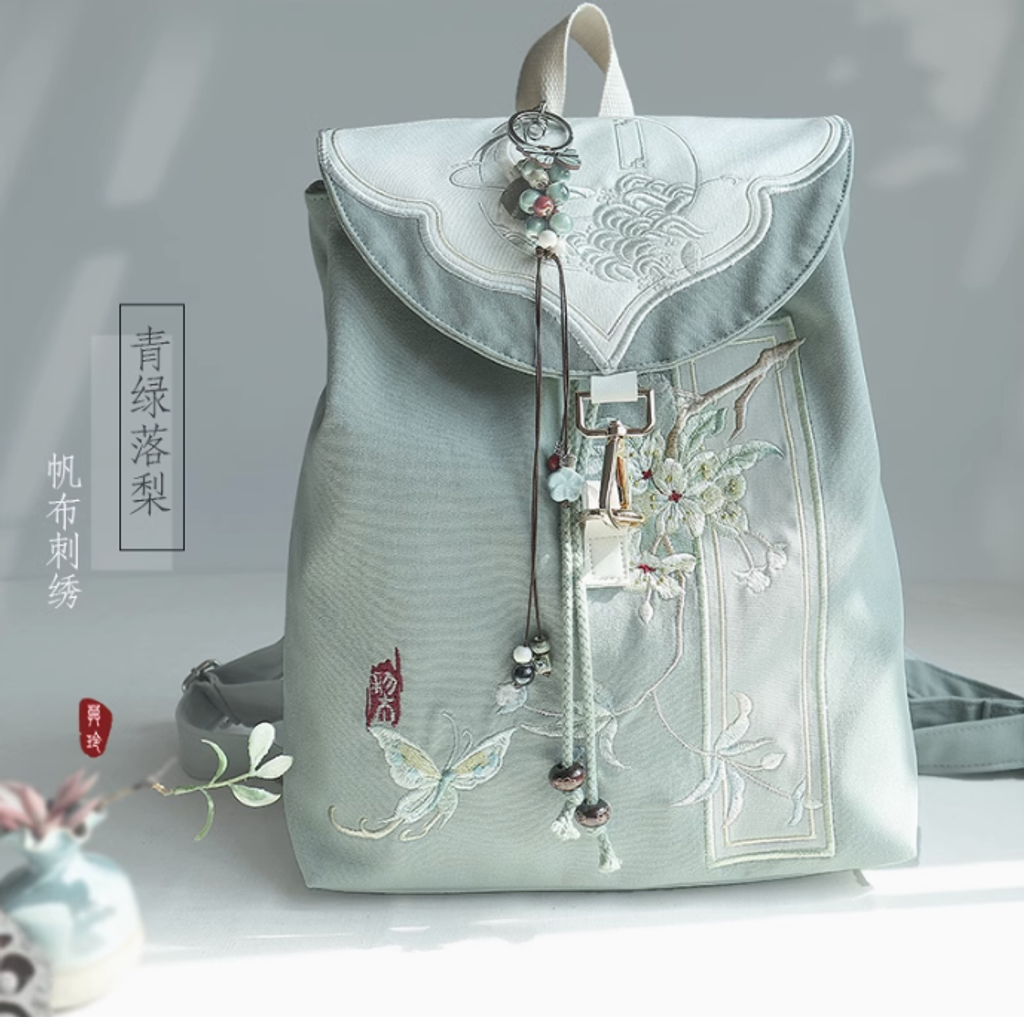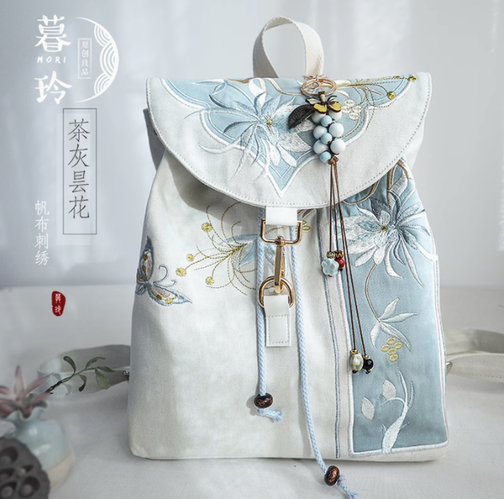 15吋書包原創復古中式古風漢服文藝刺繡拉鍊抽繩帆布電腦雙肩背包