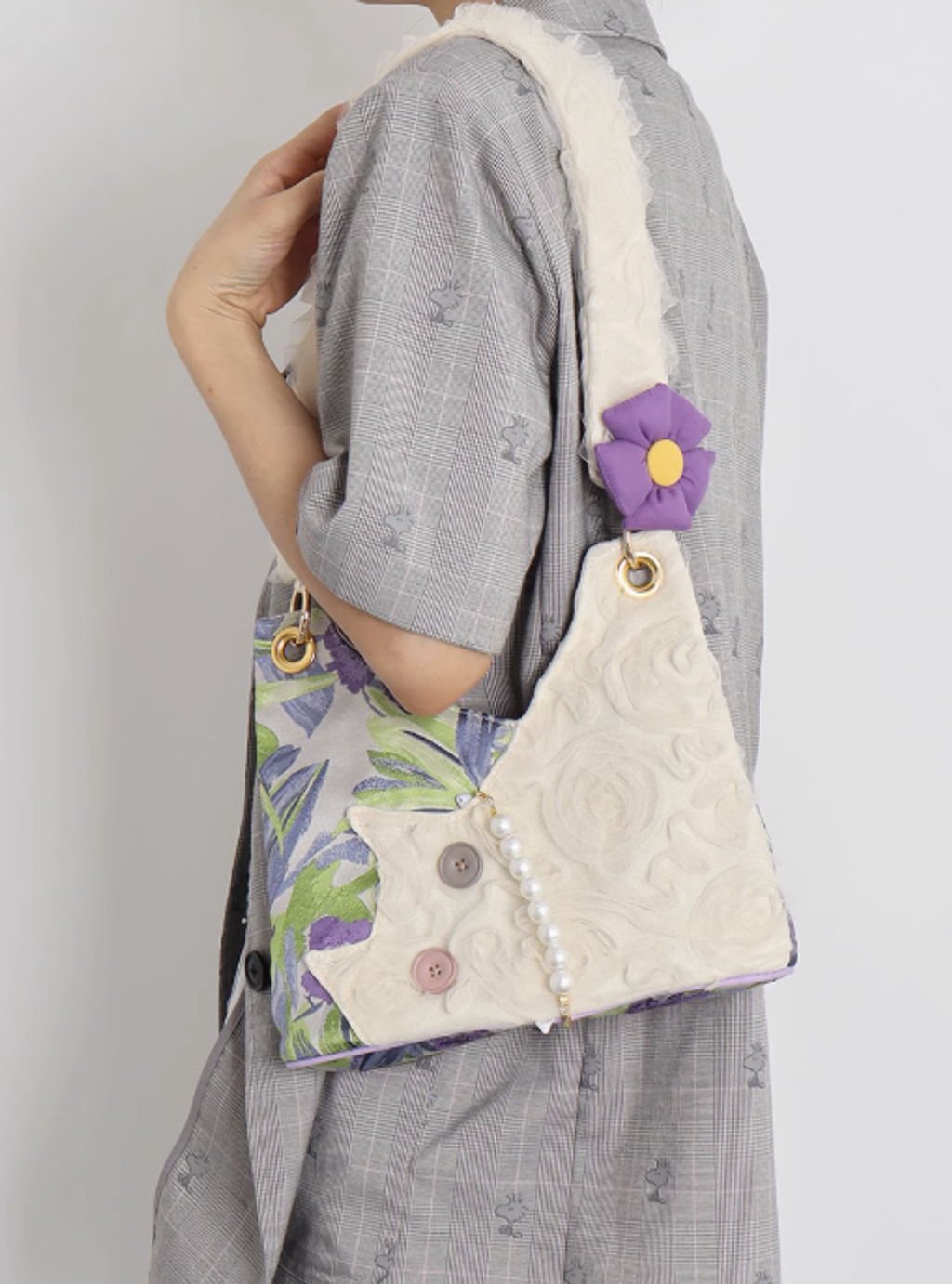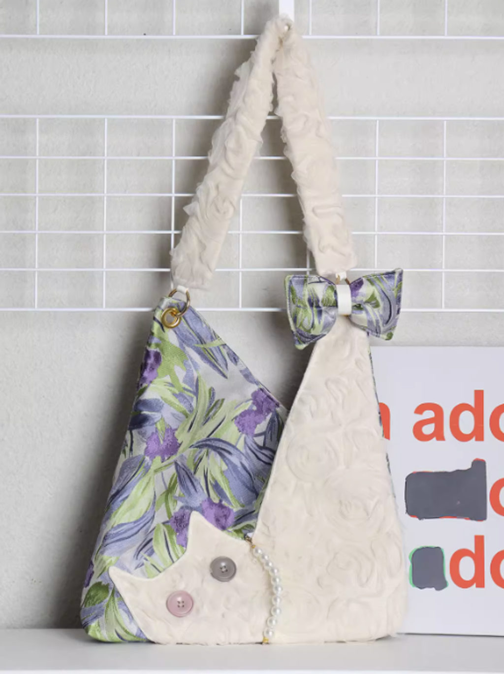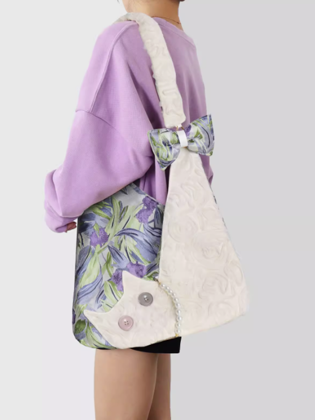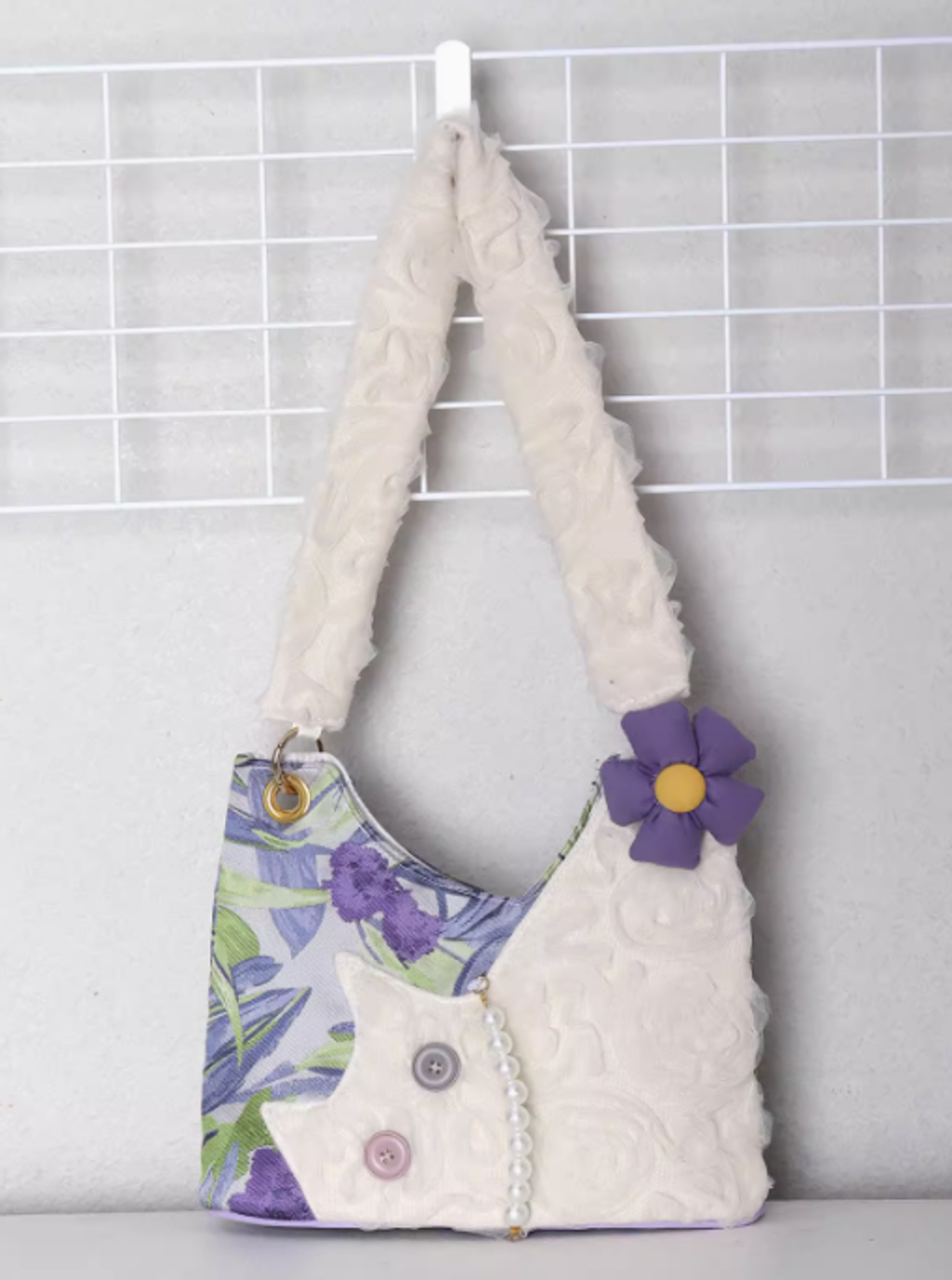 蘇小塔原創 迷你可愛雪紡貓咪腋下包春夏新款紫色鳶尾花斜挎包